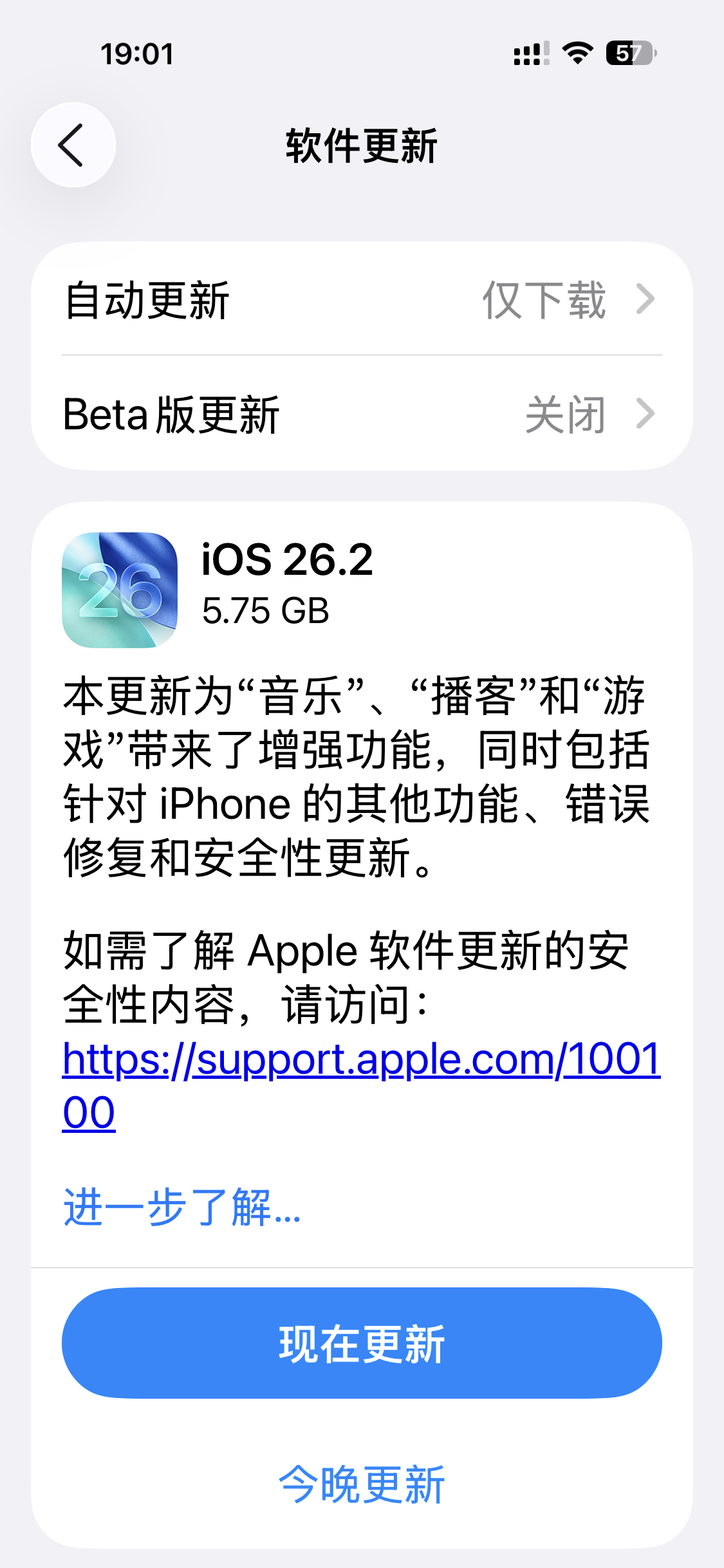 iOS 26.1一直没升 刚想起来升 发现26.2来了