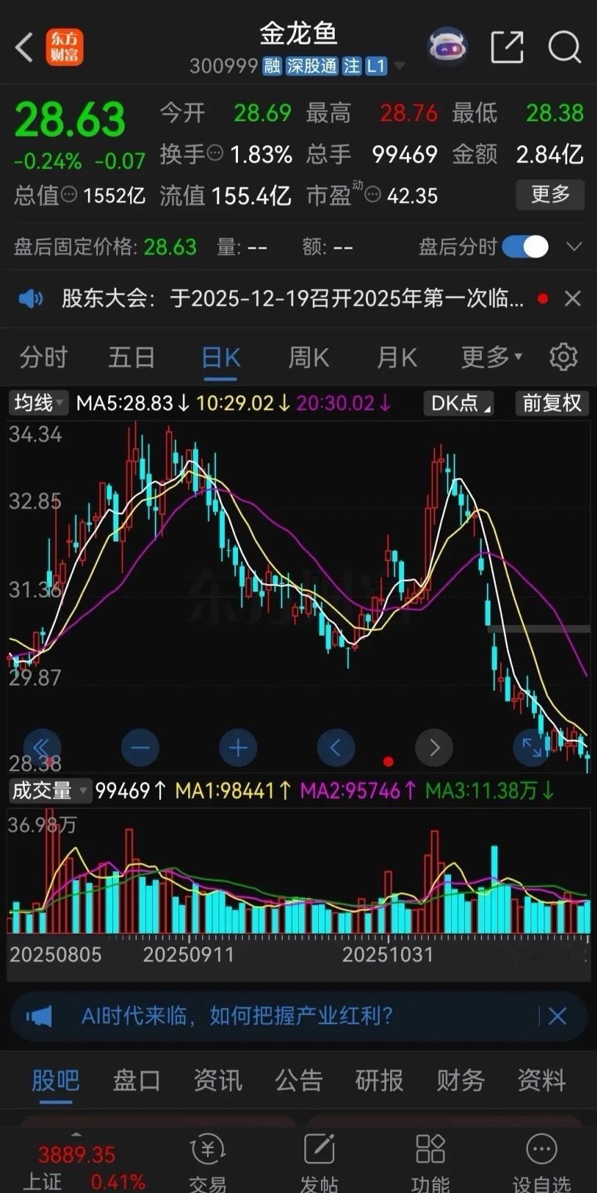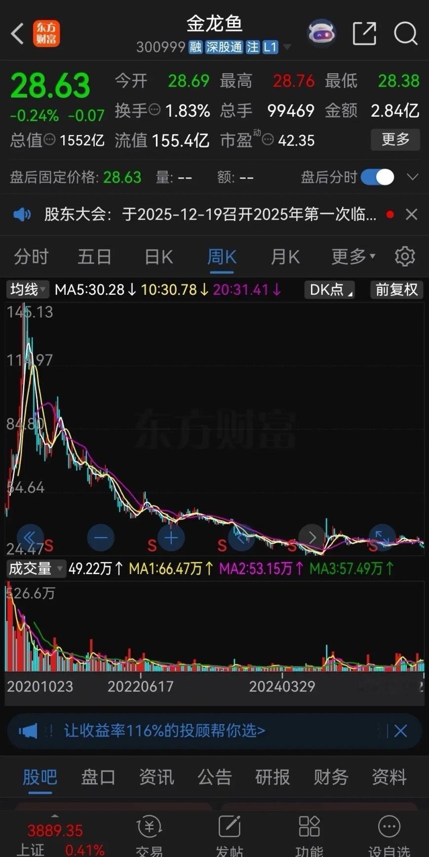 不知道“股神”林园看到金龙鱼这走势会是什么感受?金龙鱼从11月13日开始一路崩盘