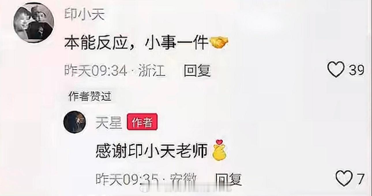 一个网友说他老婆掉水里去了,当时印小天看到,跳水里救了他老婆。
