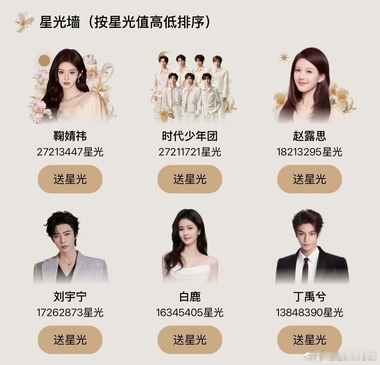 星光墙又又又大变了,鞠婧祎家发力冲到女星第一,赵露思白鹿2.3。太激烈了,也只
