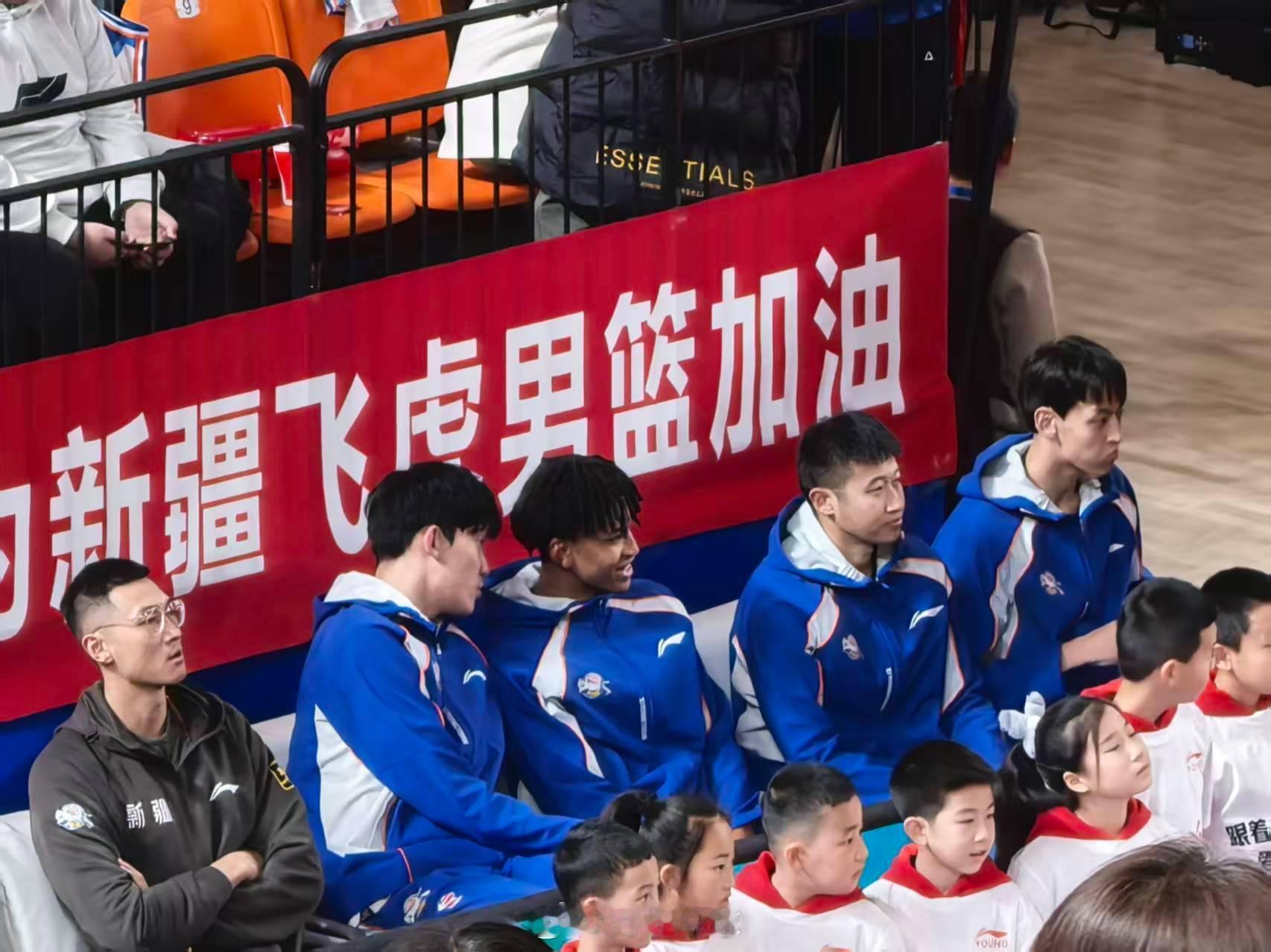 冯傲今天没有进入到大名单,在场边坐着观战。cba新赛季揭幕战新疆男篮vs福建男篮