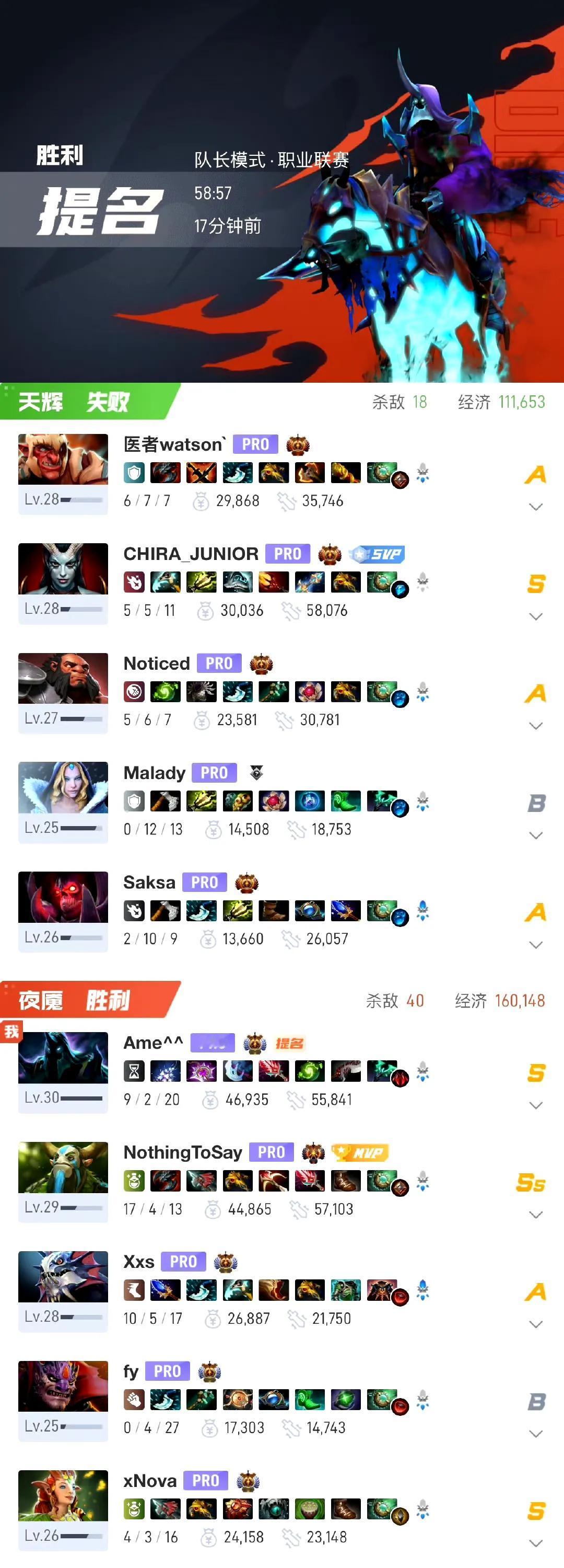 梦幻联赛S27瑞士轮,陌生的XG XG 2:0 Yandex 第一局全面碾压,不管是对线还是节奏抓人,二三四节奏不断,压着对方没有还手能力,哥哥成型出山接管比赛。 第二局也是对线不错,小节奏也可以,但是后面慢慢下来,反而被对方打回不少,但是后面团战美如画,森哥控制拉满,小鹿后面也是狂输出,虽然波折,但还是拿下了,看了这么多天最舒服的一次比赛。 昨天哥哥还说不ban双头龙,今天还是尊重了,昨天说沟通不好,今天应该就沟通好了,可以了后面继续保持今天状态。