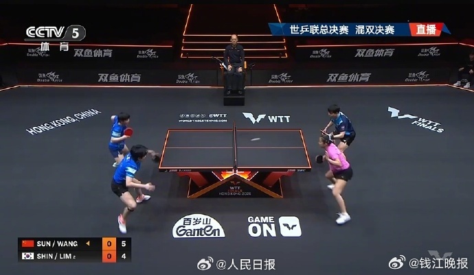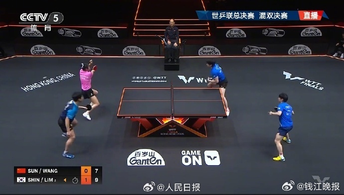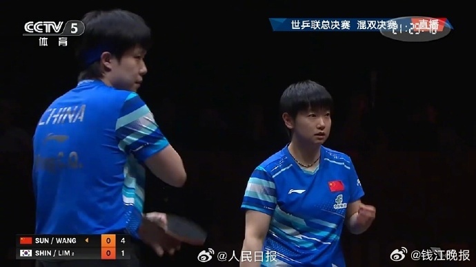 【#王楚钦孙颖莎混双亚军#】 #孙颖莎混双决赛坚持打##孙颖莎受伤退赛# WTT香港总决赛混双决赛,中国队组合 /0-3不敌韩国队组合林钟勋/申裕斌,获得亚军。孙颖莎带伤坚持出战,辛苦了!(人民日报)
