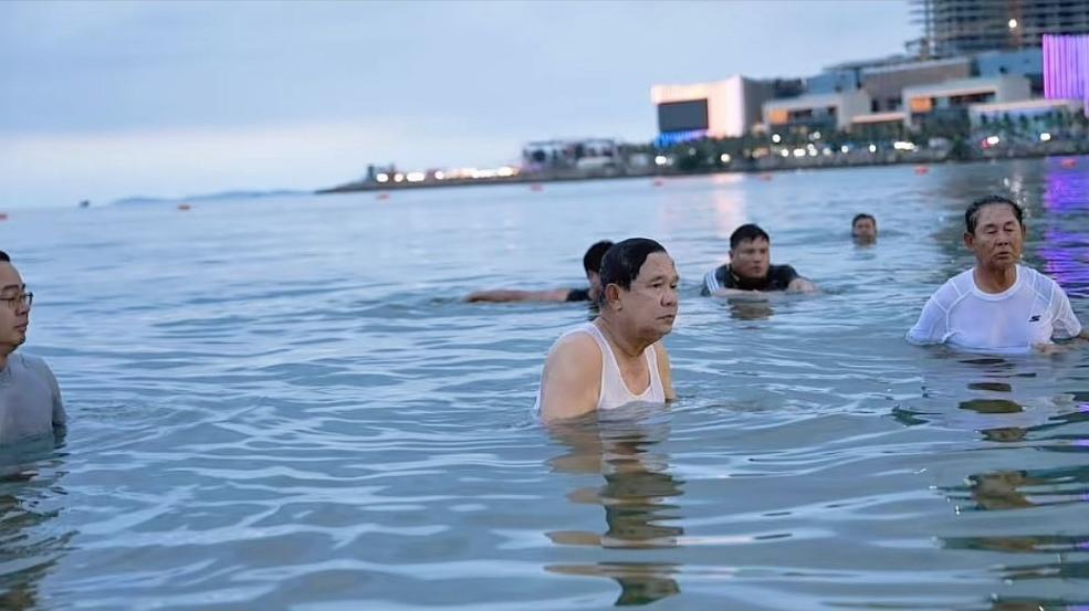 13条战线全面开火,泰柬冲突越来越失控!可万万没想到,洪森亲王却独自跑到西港海边度假去了,全程一副胜券在握,悠哉游哉地洒脱模样,也不知这葫芦里卖的什么药? 看他穿一身万年不变的白色背心配短裤,下海游泳时,还被当地主要领导和好几个保镖,宛如众星捧月一般围在中间,这排面也是没谁了!上岸休息吹着海风,手腕上硕大的金色名表不要太耀眼,尽显奢华惬意,这小日子过得不要太美了!只是此时此刻,柬埔寨超5.6万个家庭因冲突遭殃、共计19万人已无家可归,也不知洪森是怎么想的,偏偏要将这种享受生活的度假照晒到网上?对此,大家怎么看呢?
