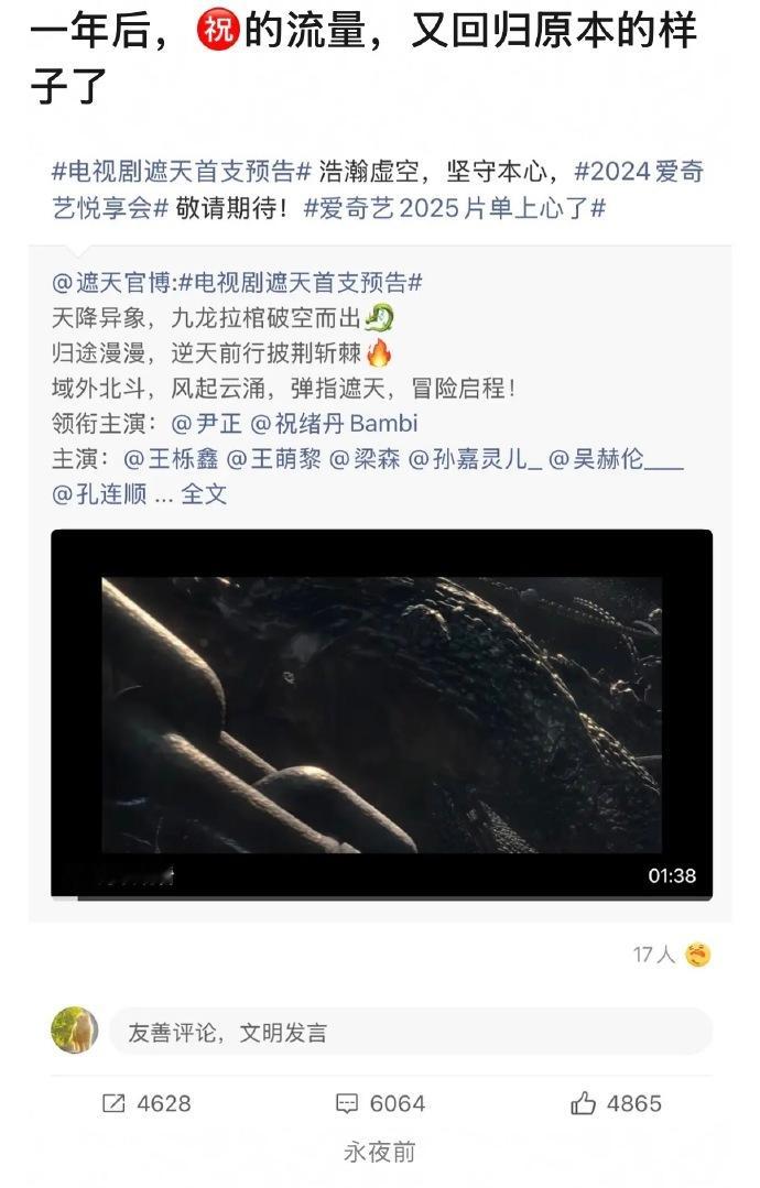 祝绪丹永夜星河播前vs播出中vs播完后一年流量对比