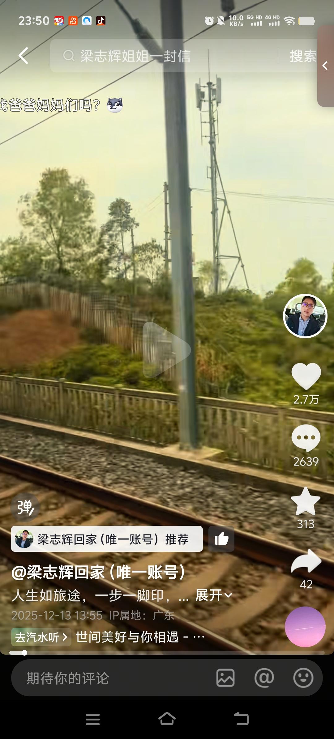 梁志辉账号随便一发,就有几万点赞,看来大家对他的喜欢不止是一点点,爸爸妈妈来广东带货了,距离梁志辉那么近,怎么可能不团聚一下,估计梁志辉乘坐火车就是去总部帮助爸爸妈妈带货的,爸爸妈妈的直播间有梁志辉在,人气更旺,加油梁爸爸,预祝大卖!