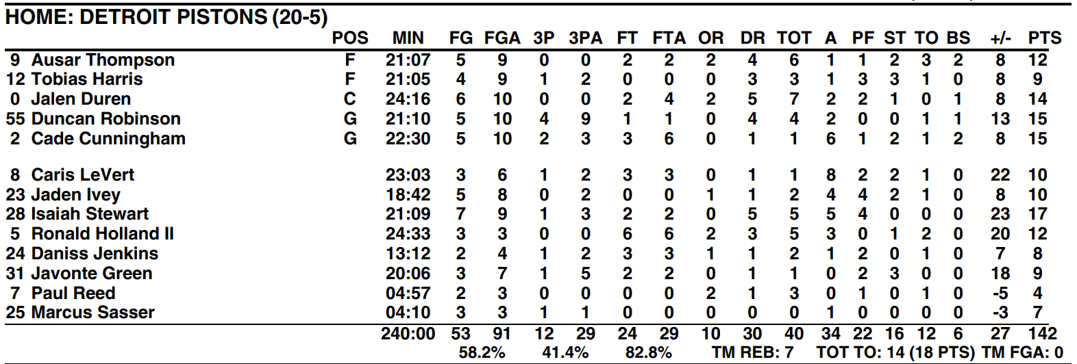 老鹰活塞这场不是今天关注度很高的球,但是还是有些值得关注的:比如杰伦·约翰逊又拿了一个三双,感觉关于杰伦已经可以下结论了,这就是老鹰的下一个答案,新的鹰王,为特雷杨搭的这个台子太适合他,当然这里面也有前森林狼球员 NAW 的贡献,真心不错,希望在亚特兰大好好的;而活塞在得到了 142 分的情况下,没想到,居然没有任何一个球员得到 20+,最高分的斯图尔特 17 分