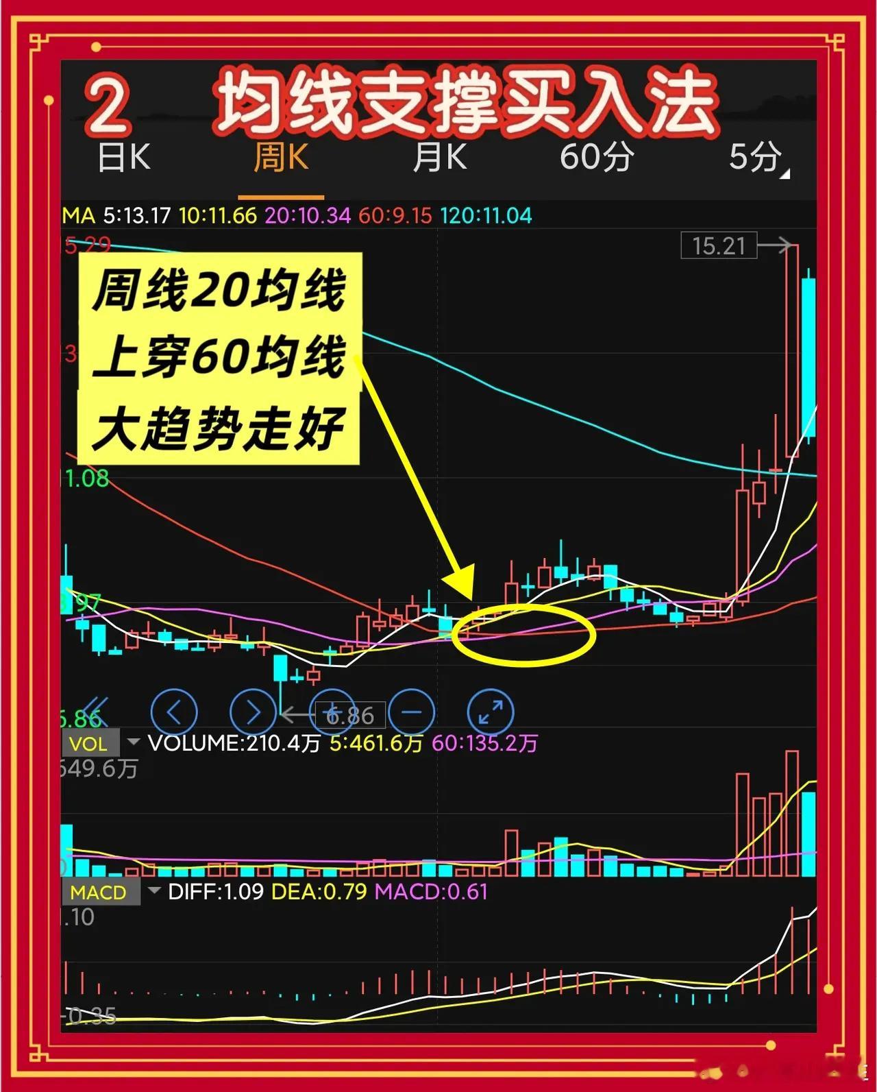 关键支撑均线买入法关键支撑均线,乃是上升趋势里股价多次回踩却始终不破的那条线。它或许是20日、30日或者60日线,一旦得以确认,便是主力防守的生命线。选股三硬指标:近半年有两次以上放量涨停、回踩时缩量至拉升峰值的三分之一、低点抬高形成上升通道。缺少其中任何一条,直接淘汰。确认三步:周线MA20向上且MA60走平、日线回踩低点连线与均线重合、MACD零轴上方绿柱缩至消失。三信号齐备,便可进入狙击圈。买点只认三招:首次回踩地量急跌、二次回踩长下影、突破前高再回抽。各搭配不同仓位,逐层加码,拒绝一次性满仓豪赌。止损铁律:收盘跌破关键支撑均线,且次日三十分钟无法收回,立即出局,将亏损控制在-5%以内,永不让深套发生。持仓要诀:周线不破不出、拉升放量可高抛四分之一、涨幅翻倍且远离均线15%上移止盈。守线如守命,吃鱼身不吃鱼尾若这篇条款式精讲对你有用,请点赞、关注、评论、收藏并转发,让更多趋势爱好者一起升级交易体系。本文仅供思路交流,不做投资推荐。股市有风险,入市需谨慎。股票股市