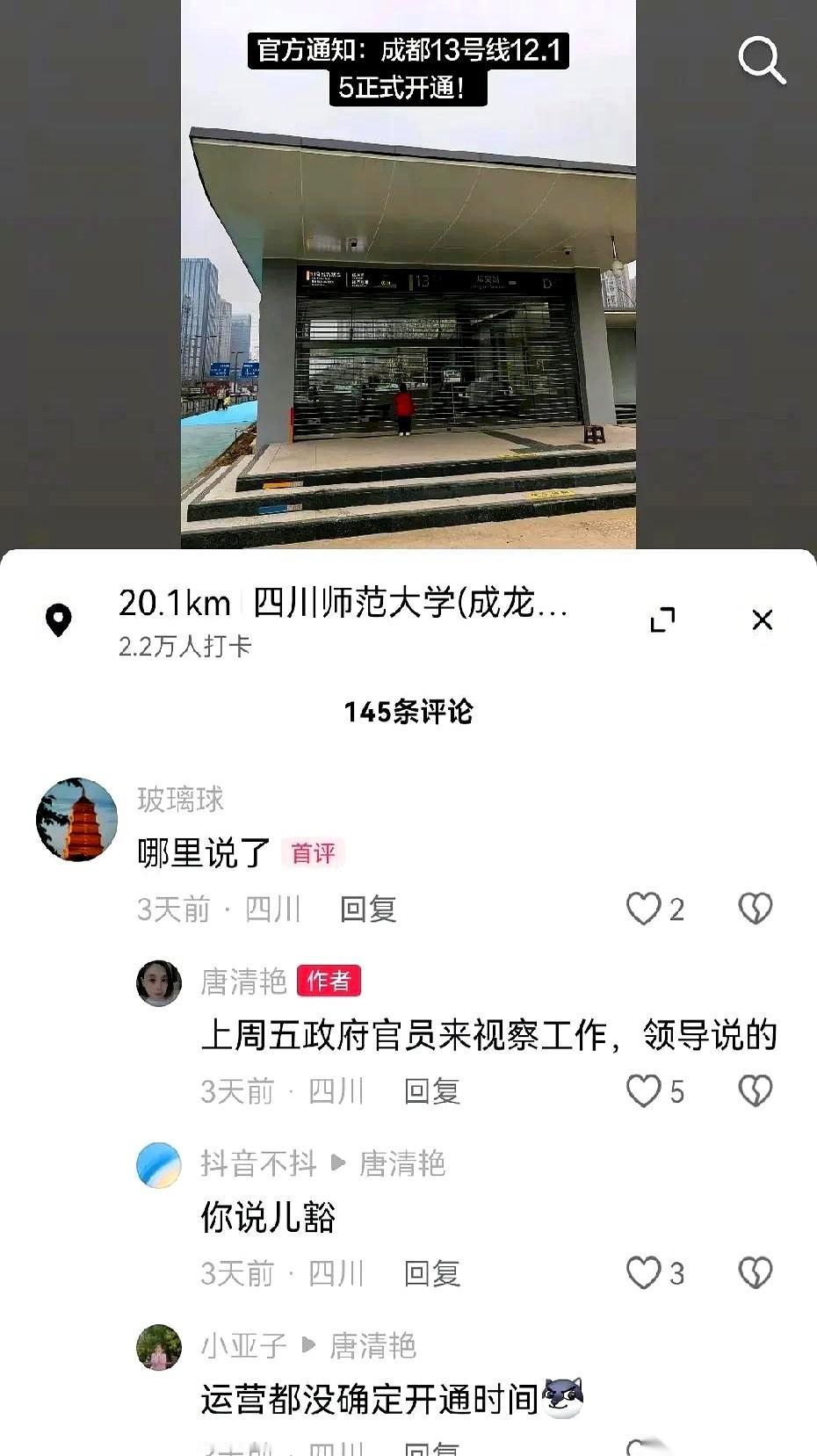每天都要刷八百遍,成都地铁的官微到底发没发。 就差把手机戳出火星子了。 说好的13、30号线呢? 试乘都搞完了,票都体验过了,我这心里就跟猫抓一样。家门口的地铁站,灯都亮了,天天从那儿过,看得见摸不着,馋得我呀…… 就好像一个新媳妇儿,盖头都给你掀了,就等着进门了,结果你告诉我,司仪还没定好日子? 想当年,人家10号线、17号线,试乘完5天就官宣了,那叫一个麻利。 怎么到了13、30这两兄弟这儿,就成了慢性子? 万事俱备,就差临门一脚的感觉,最熬人。 搞快点嘛,我的天府通已经饥渴难耐了!