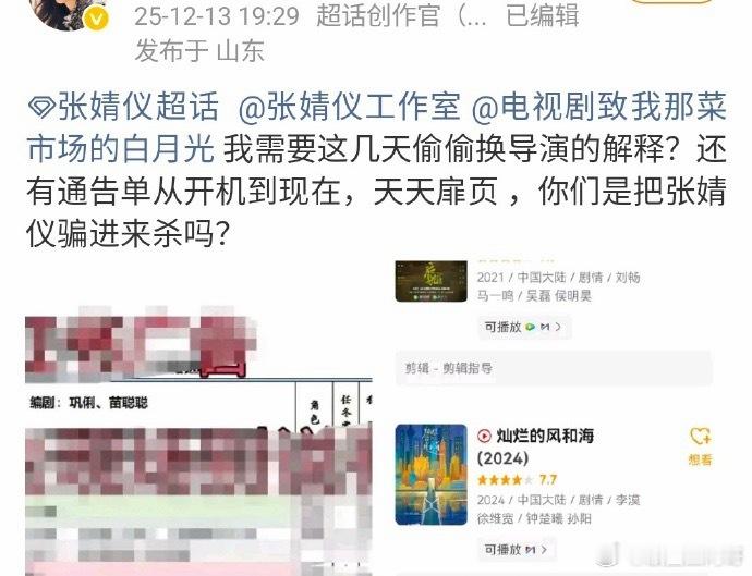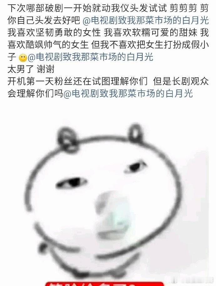 张婧仪粉丝向《致我那菜市场的白月光》剧组维权,这妆造有点太接地气了