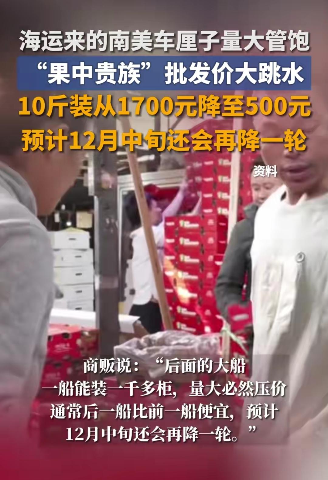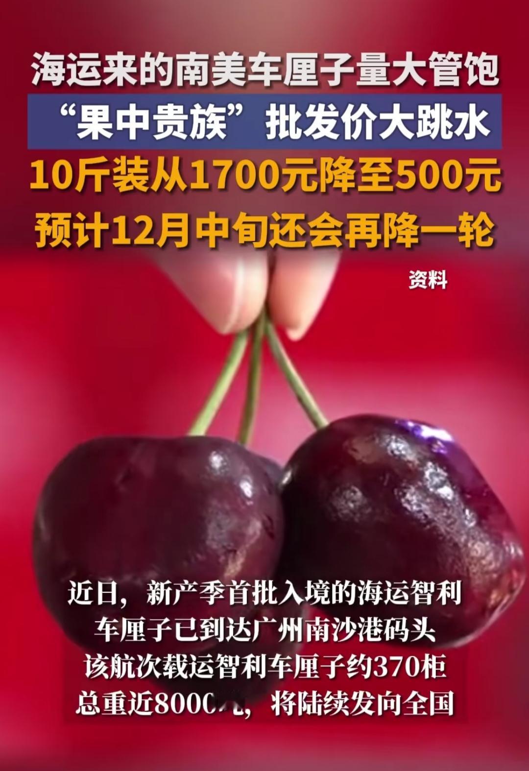 往年按颗数着吃的车厘子,今年居然实现“按斤炫”自由了!南美海运货批量到港,批发价直接大跳水,吃货们狂喜到跺脚。 记得前几年冬天,车厘子那叫一个金贵,超市里动辄七八十一斤,买一小盒都得心疼半天,吃的时候一颗接一颗舍不得咽。今年可不一样了,货架上堆得满满当当,价格拦腰砍,普通家庭也能闭眼囤。 其实车厘子的降价,藏着普通人对“小幸福”的期待。冬天的快乐多简单啊,一口脆甜爆汁的车厘子,就能驱散寒意和疲惫。往年舍不得买的水果,今年能随心所欲吃个够,这种“踮踮脚就能拥有”的满足感,才最戳人心。 而且这背后也是物流和供应链的进步呀,让远在南美的新鲜水果,能平价走进千家万户。生活里的小确幸不就是这样吗?不是非得买多贵的东西,而是曾经稀罕的美好,慢慢变得触手可及。 你今年炫车厘子了吗?打算趁降价囤多少?评论区晒晒你的“车厘子自由”!