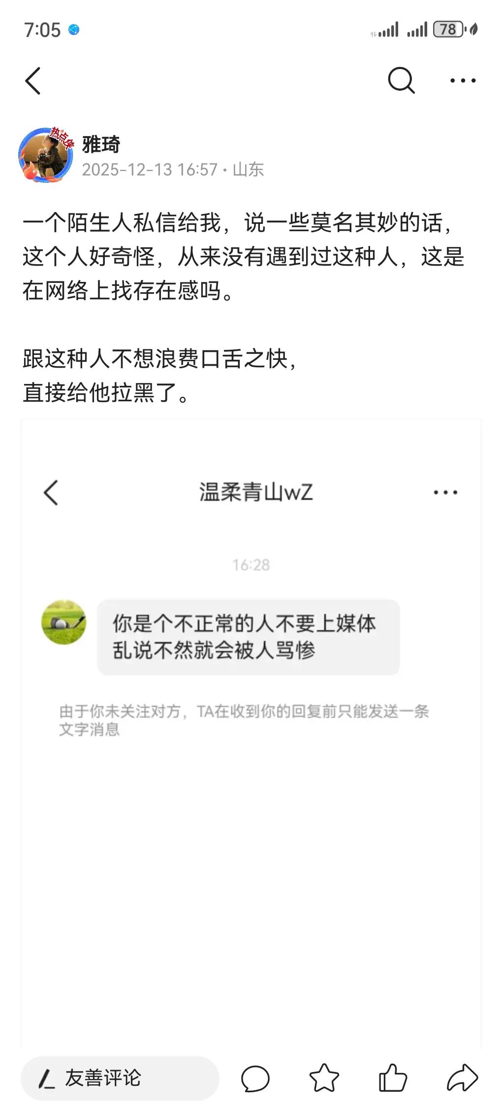 谁有遇到过这种人,莫名其妙的用文字语言攻击,本想无视他,又心有不甘。 也不愿跟他逞口舌之快,无聊至极。 可想而知,现实中人品得多差。