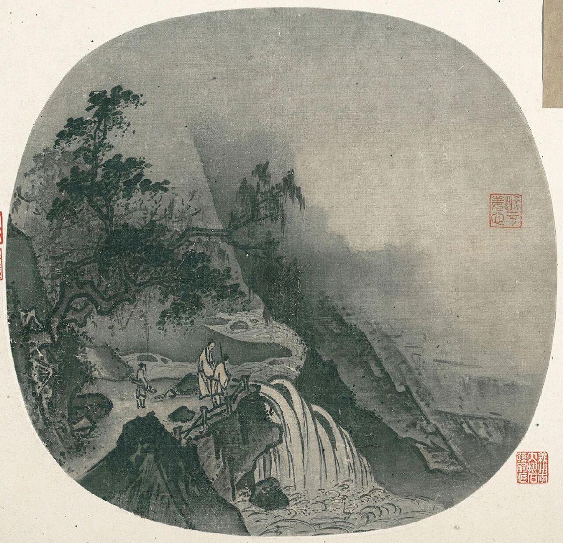 马远《观瀑图》:一角山水里的雷霆万钧 🌊 马远的“残山剩水”,在《观瀑图》里藏着大乾坤。 你看那瀑布,不从天际来,偏从山坳里猛地砸下来,笔锋如斧劈,白练似崩雪,墨色浓淡间,竟能看出水花四溅的凉。山是半截的,崖是斜出的,却用焦墨皴出石骨的硬,像被瀑布冲了千年,仍倔强地立着。 松下有高士临水而坐,身影小如豆,却透着股“听瀑忘世”的静。他不画全景的铺陈,只取山水一角,留白处似有云气蒸腾,倒比满纸浓墨更显天地辽阔——这便是马远的“边角之趣”,少即是多,简里藏着万马奔腾的势。 瀑声该是震耳的,却被松下的静衬得更响;山是沉默的,却因水流的动而活了。一笔一墨,都在讲“动与静”的对话,难怪看这画时,总觉得衣袖沾着水汽,耳畔绕着轰鸣。 马远 观瀑图 边角山水