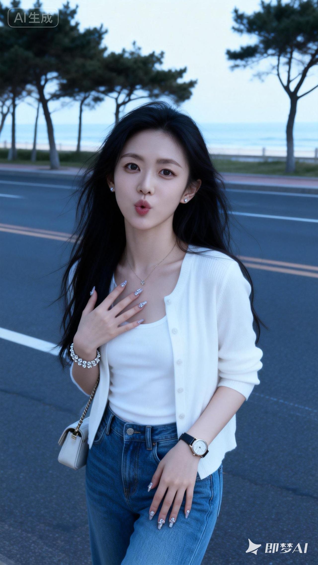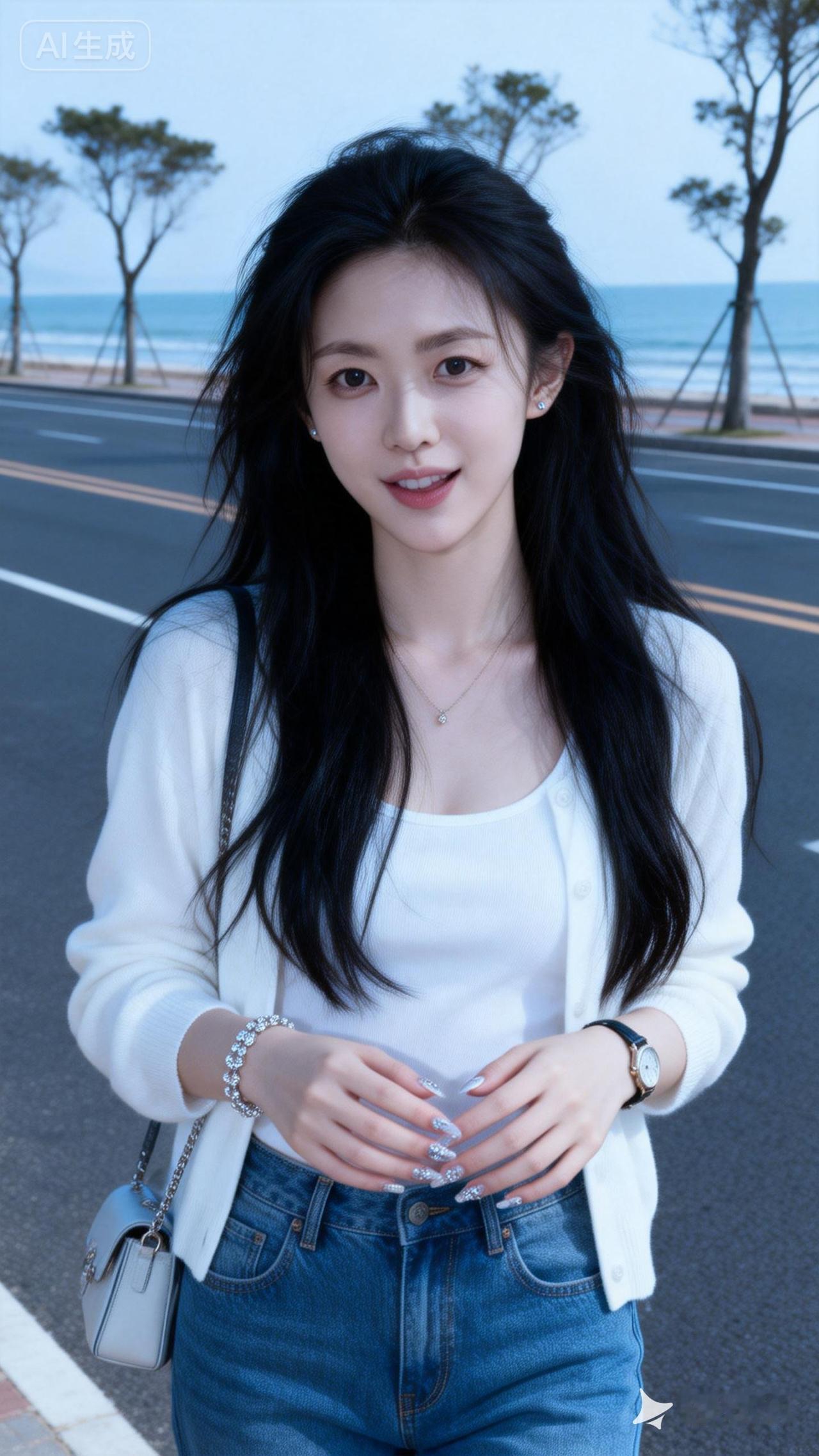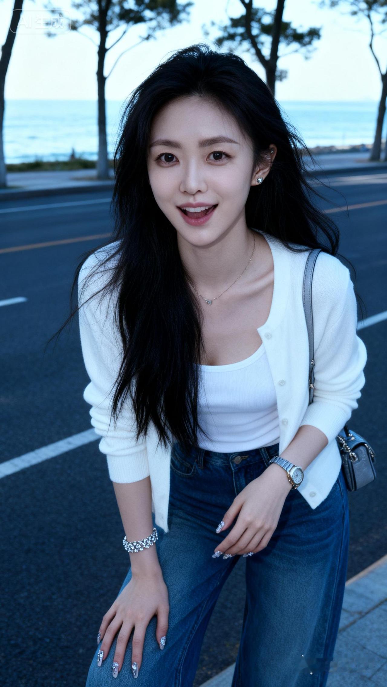 日常快照风格,非精心构图或打光,黑色长直发,冷白皮,拥有腹肌马甲线,穿搭时尚,肩