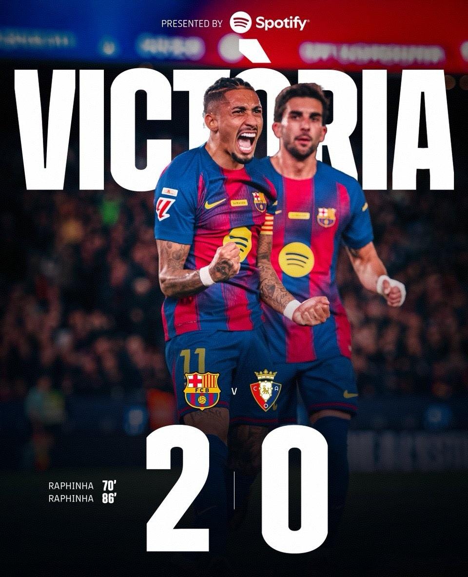 自从佩德里和拉菲尼亚回归后,巴萨像是换上了新引擎和翅膀,战绩一路飘红!本轮在西甲他们2-0战胜奥萨苏纳后,迎来了各项赛事的五连胜,拉菲尼亚双响,佩德里送上一次助攻! 本场获胜后,巴萨继续在西甲积分榜上领跑!他们已经连续37场西甲比赛取得进球,是队史第二长的连续进球纪录,最长的纪录是12/13赛季的连续63场进球!同时,巴萨2025年在西甲已经打入100球,比第二名的皇马多进了31球,不愧是是西甲进攻火力最强的球队! 巴萨中场核心佩德里延续着大师级的发挥,他全场贡献2次关键传球,精准传球76次,4次长传全部成功!他在中场的梳理可以说是巴萨进攻的真正的核心,队友们也都相信他,处理不了的球交给佩德里就行了,这已经是巴萨球员们的共识!