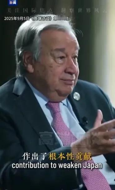 古特雷斯还是有立场的! 他在9月份的采访中强调,二战的标志是日军制造了九一八事变,中国军队的抗日行动抗击了日军的进攻,是整个同盟国战场的一部分,为同盟国的整体性胜利提供了重要的支撑,尤其是对亚洲战场的局势起到了关键性的作用。 他说,中国的抗日应该从整个二战大局上来看,不应该单独割裂为中国抗击日本,这显然是有别于美国投掷原子弹或苏联出兵东北决定抗战胜利的论调,打破了关于亚太战场的西方叙事,凸显出中国在二战中做出的卓越贡献。 坦白讲,没有中国战场拖住日本,亚太的形势还真的不好说,古特雷斯这次站在我们这边,显然是非常正确的。