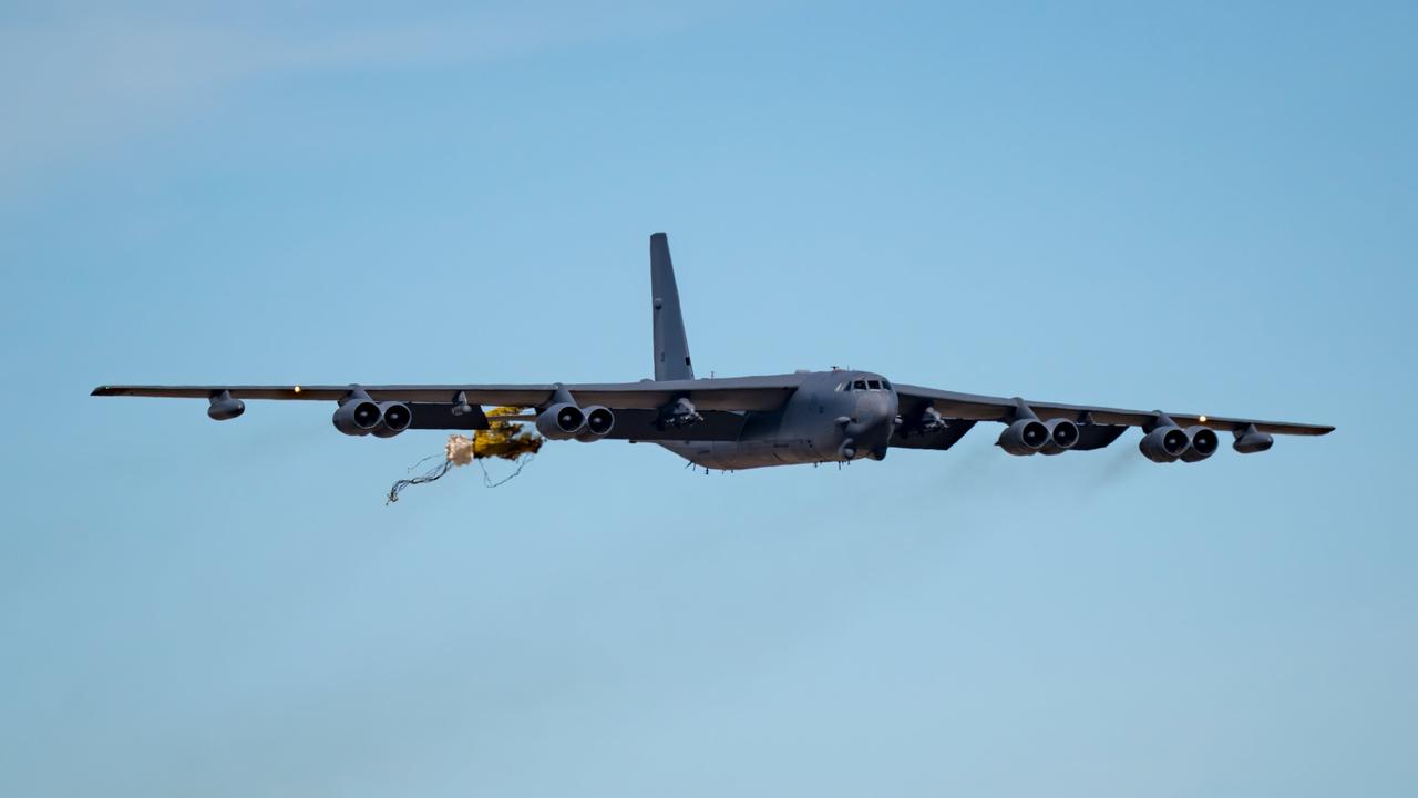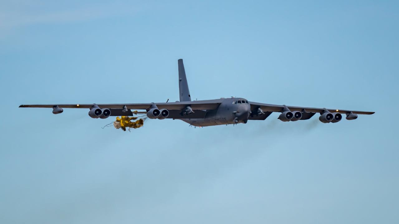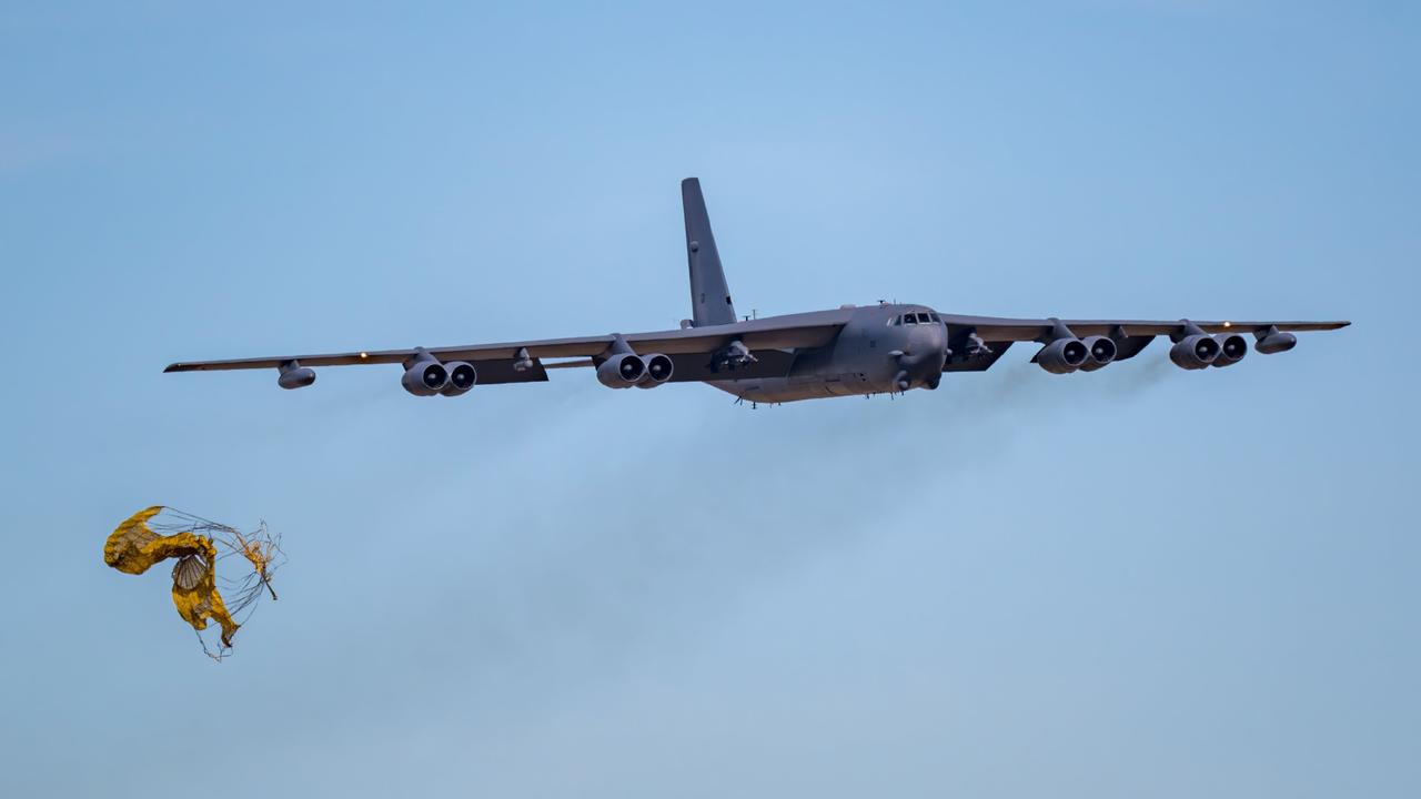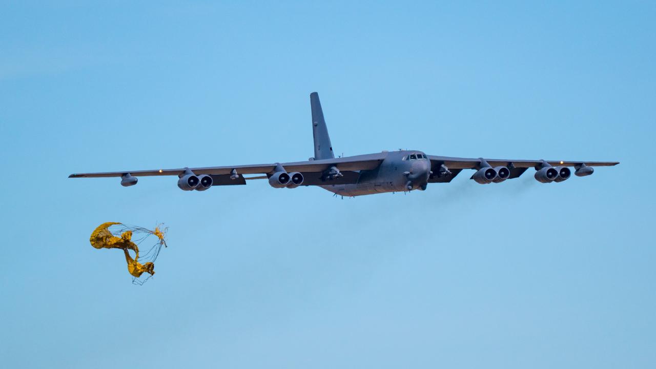 空中开伞高照图来了,美军B-52H战略轰炸机在空中意外抛出减速伞,飞机正在低空飞行,只能说运气相对比较好没有一头栽下来。最大起飞重量超过200吨,作为重型机降落时确实能用上减速伞,只是这次在空中打开差点造成事故,一把伞“击落”一架战略轰炸机就有意思了。