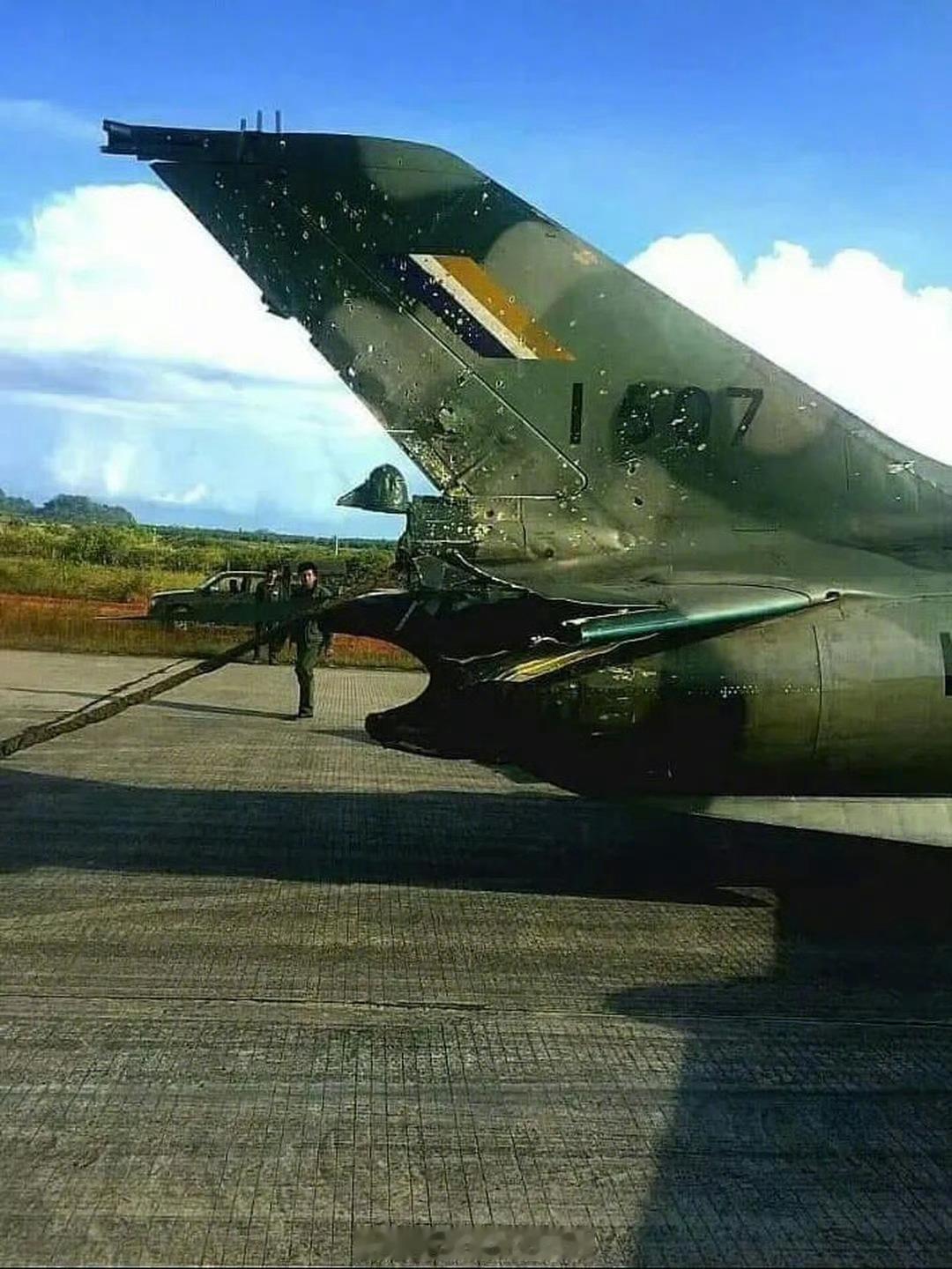 🇲🇲缅甸空军历史博物馆的展品: 一架2019年在缅北作战时受伤的强-5IIK飞机,被便携式防空导弹击中尾喷口右侧附近,右平尾、垂尾受伤,尾喷口变形,但飞机仍然成功返航。强-5IIK是上世纪90年代军援缅甸的专门机型,在强-5II基础上更换了部分机载设备。取消了全向雷达告警系统,换装SRT651C型通信电台、LJZ-6告警系统,YD-2敌我识别器、采用TY2碳片调压器的直流调压系统。1994年6月,南昌飞机制造公司按总参提出的飞机技术状态改装要求完成了首批12架强-5IIK生产,同年7月在昆明巫家坝机场交付缅甸空军。之后根据缅甸空军的要求,在1996年和1998年分两批交付24架,使交付缅甸的强-5IIK总数达到36架。此前,出口苏丹空军的强-5被一枚苏制“箭-2”(SA-7)击中喷口附近后成功返航,受伤飞机被运回中国并成功修复。最神奇的是,飞行员返航时甚至未发现飞机中弹烽火问鼎计划每天认识一件兵器