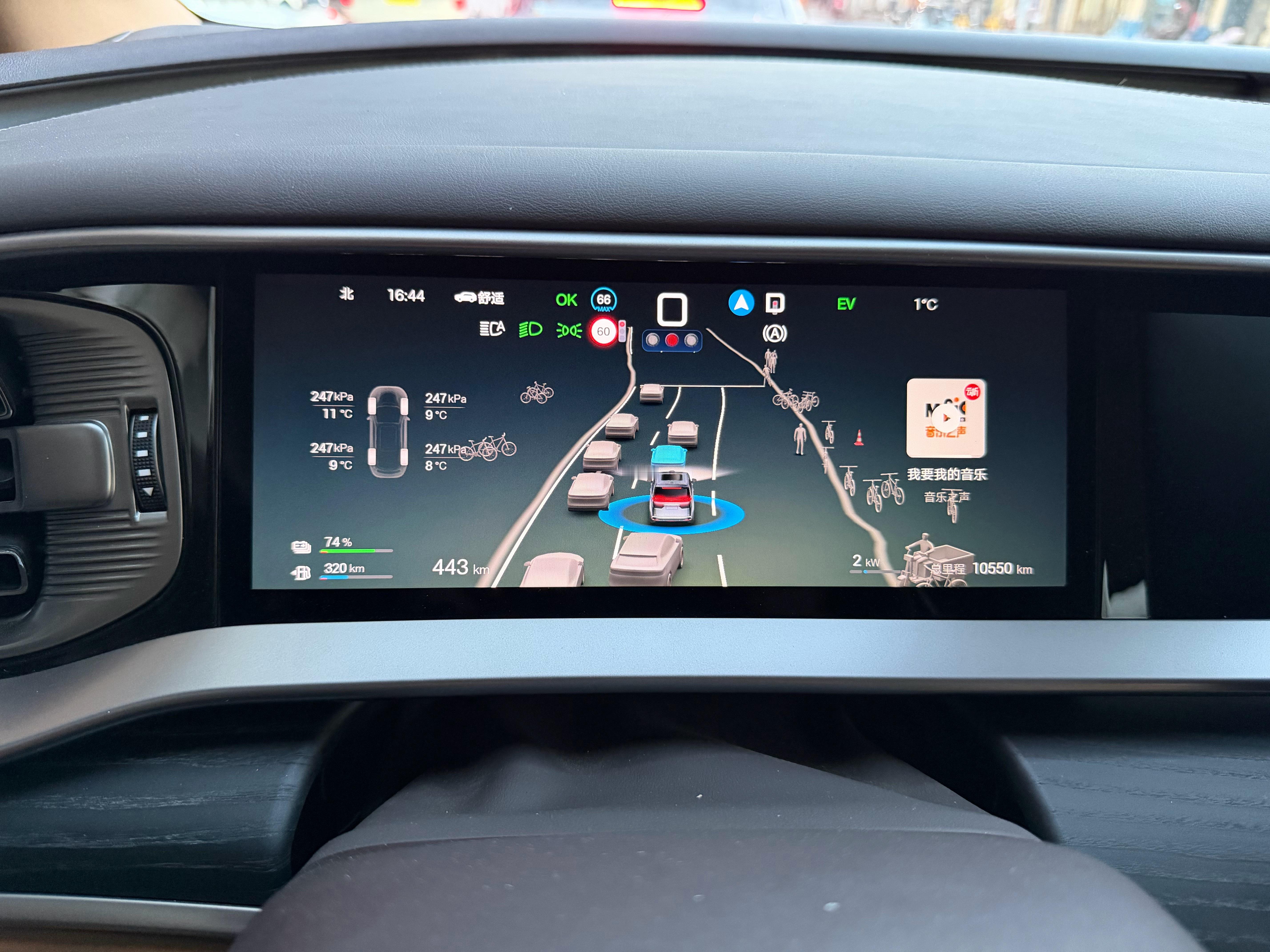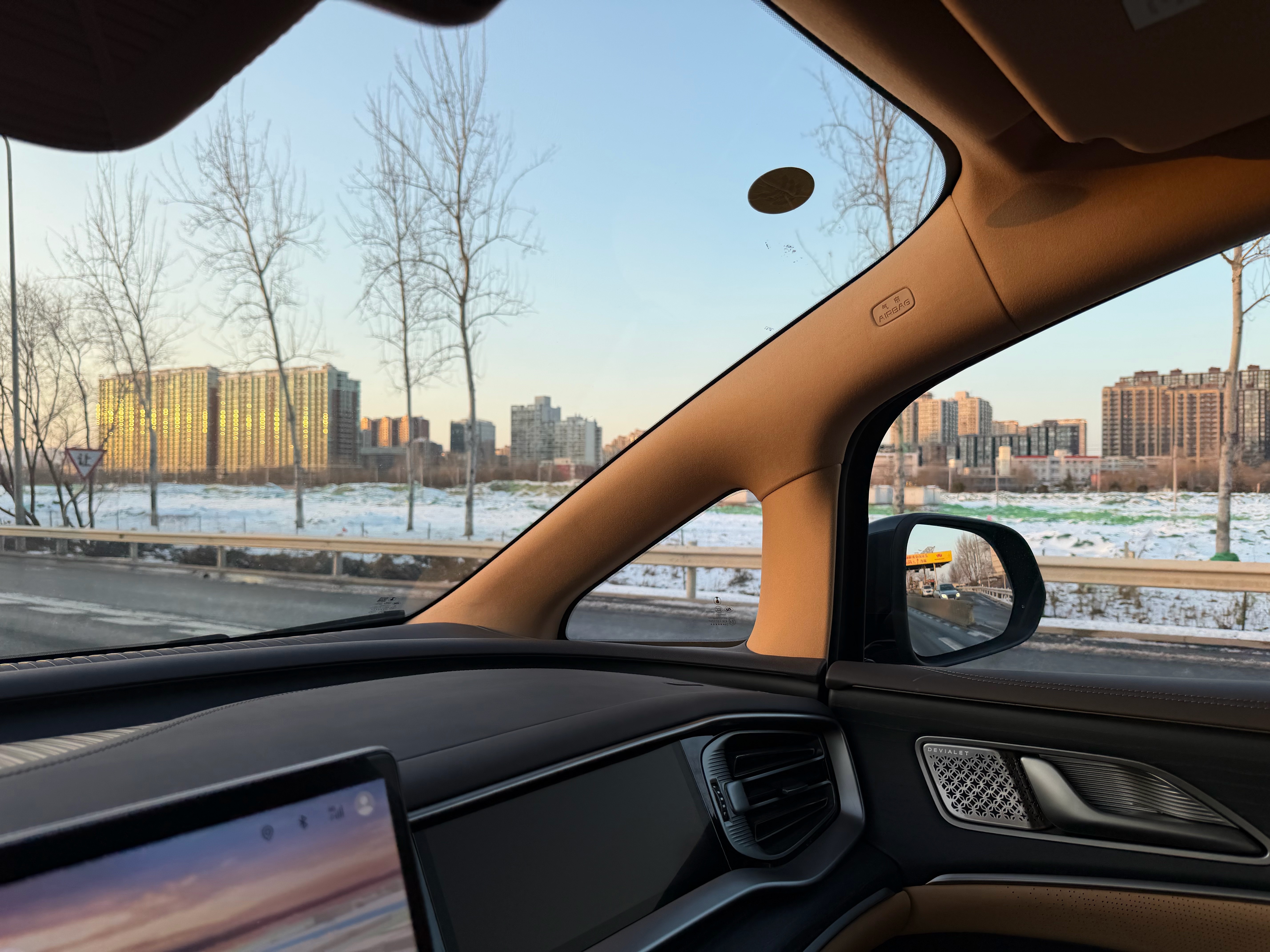 雪后的北京,主路路面的积雪已基本融化,但立交桥匝道的阴面边缘仍有残雪,我特意打开了腾势D9的雪地模式,能明显感觉到车辆行驶更稳。不过,雪地模式下无法开启智能辅助驾驶,所以在确认路面无雪后,我会切换回标准模式,开始使用领航功能。一个意外的发现是,车辆在处理加塞和前车急刹这类突发情况时,能力似乎变强了。面对加塞会在保持安全距离的前提下,平稳地减速,从容地让对方并入,整个过程非常平顺,不会让我感到紧张。当前车突然刹停,我的车在稳稳减速后,会立刻平顺地提速,迅速恢复到设定的巡航速度,没有丝毫迟疑。自动变道逻辑也更加人性化和果断,和我自己在车流中穿梭的感觉几乎没有区别。车这东西,常用常新总能有新发现。