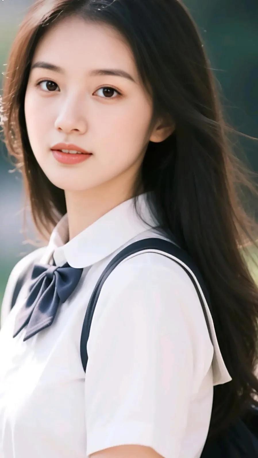 青春洋溢的校园少女,微笑着迎接新的一天!🌞💕