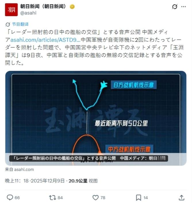 报道中日军舰通话录音后,朝日新闻遭日本网友狂喷,要求道歉称录音是假的!12月9日