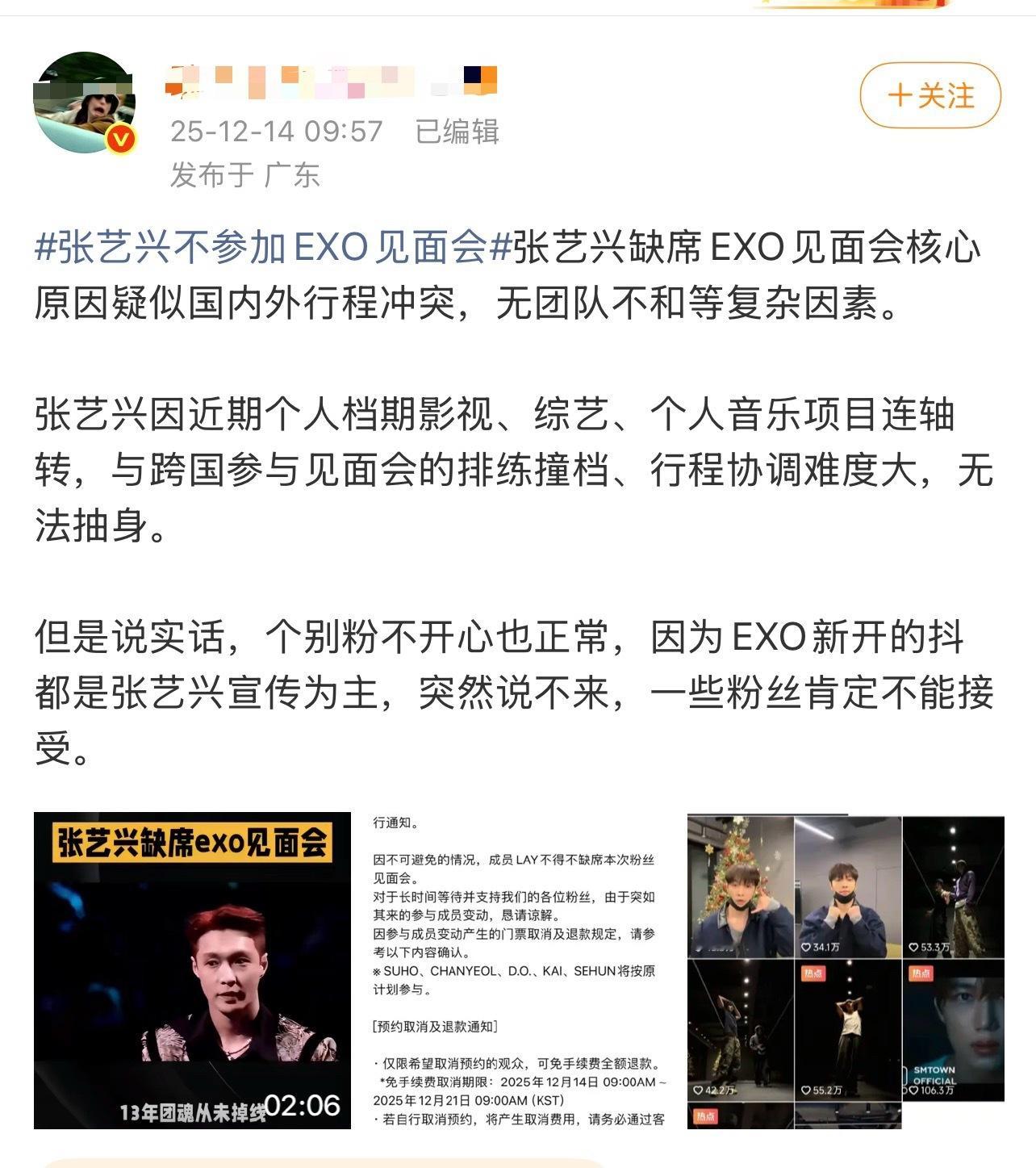 张艺兴不参加EXO见面会一切由SM担责,张艺兴尽职尽责,努力配合。居然还被甩锅,张艺兴人还在韩国,哪来的行程冲突?棒子可着中国人薅。