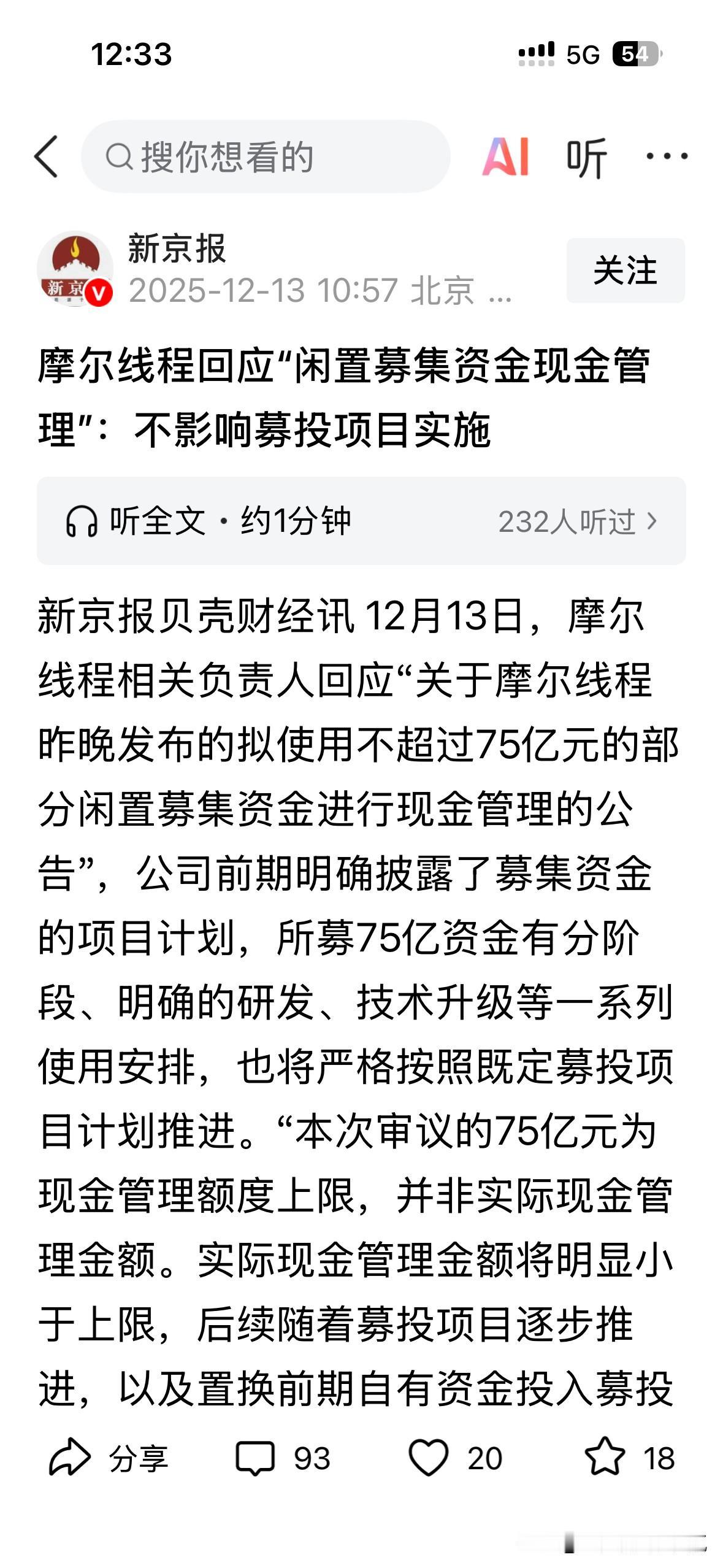 摩尔线程这个融资75亿结果拿去理财,资本市场真的太热情了! 下周会怎么走? 怎么来的怎么回去。