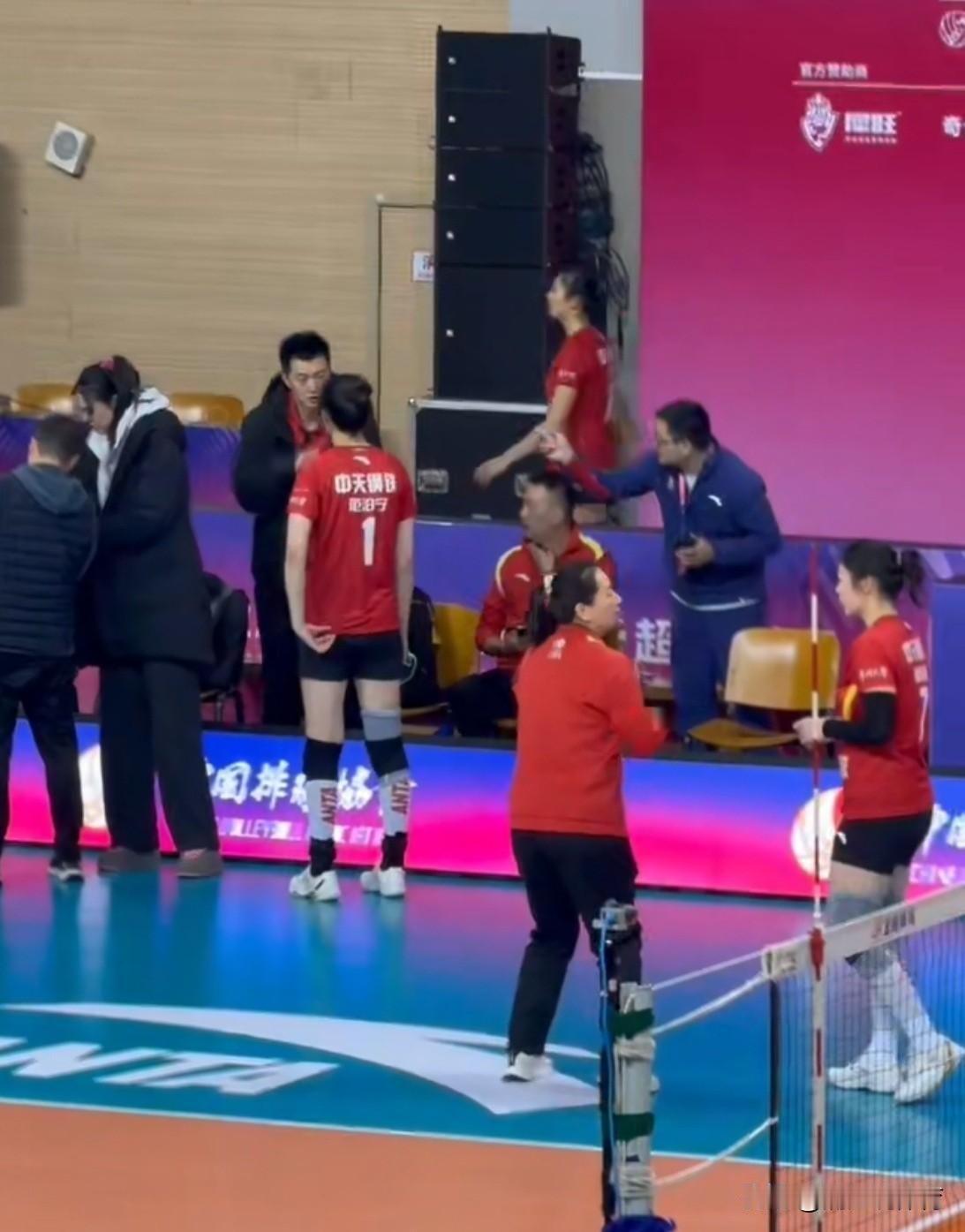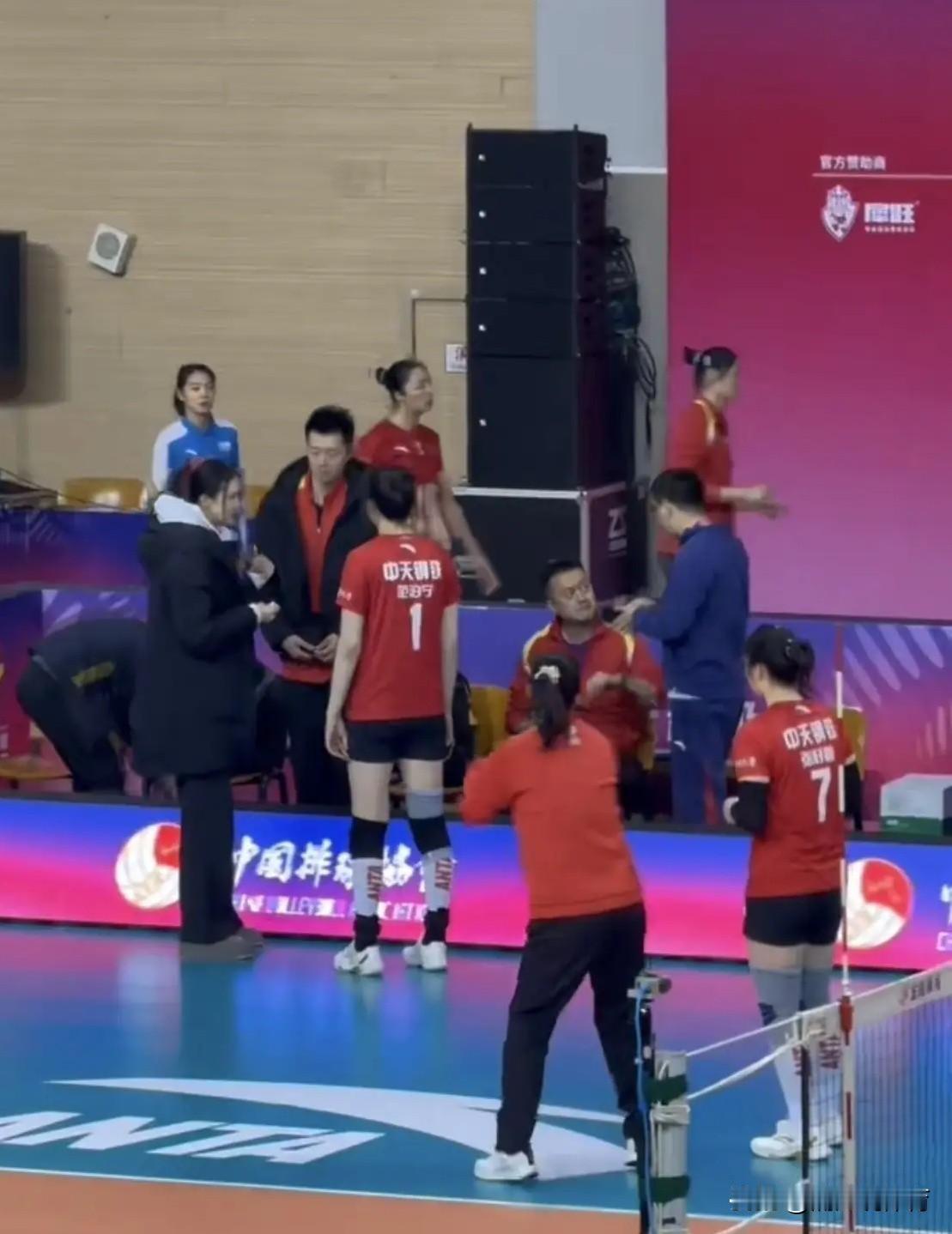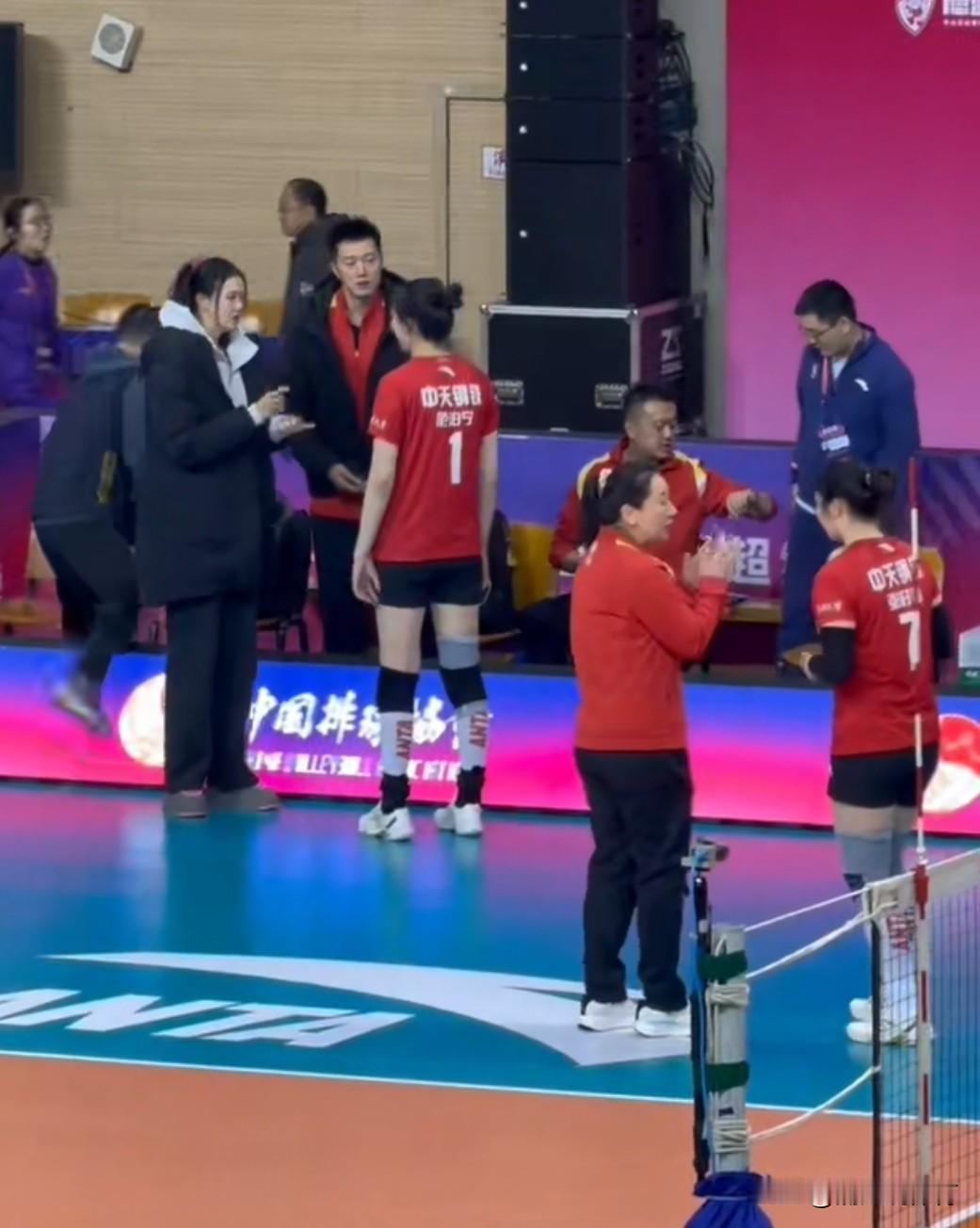 张籽萱赛后也被教练“开小灶”。江苏女排3-1力克河南女排之后,球友拍下了这一组镜头:左边是张晨和张常宁兄妹俩给范泊宁“开小灶”,指导她如何更好的进攻。而右下方则是被江苏女排返聘的河北名帅李立军在给张籽萱“开小灶”。张籽萱排超“首秀”比赛中发挥不稳定,尤其第二局关键球组织上存在问题,导致江苏队24-26输掉一局,所以即便最终赢得比赛,教练也毫不懈怠,给她做了进一步技术指导。当然,无论是19岁的范泊宁还是17岁的张籽萱,都乖乖聆听教练的耐心指导,求知若渴的模样。这样的江苏女排想不强大都难。虽然他们暂时还不具备绝对实力去冲击排超联赛冠军,但假以时日,他们必定站上排坛之巅,笑迎东风。