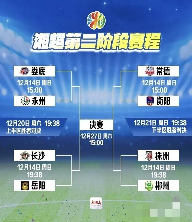 湘超今天正式进入第二阶段淘汰赛,不过看了下对阵表,基本没啥悬念。 毕竟业余比赛各队之间差距比职业球队之间更大。 1、长沙对岳阳,毫无悬念,岳阳进攻火力太差,估计会摆大巴。 2、常德对衡阳,衡阳进球挺多的,但后防不稳,赢不了。 3、株洲对郴州,又是一场一边倒的比赛。 4、娄底对永州,唯一有点悬念的比赛,虽然娄底排名靠前,但大赛淘汰赛主要看防守,永州应该能赢。