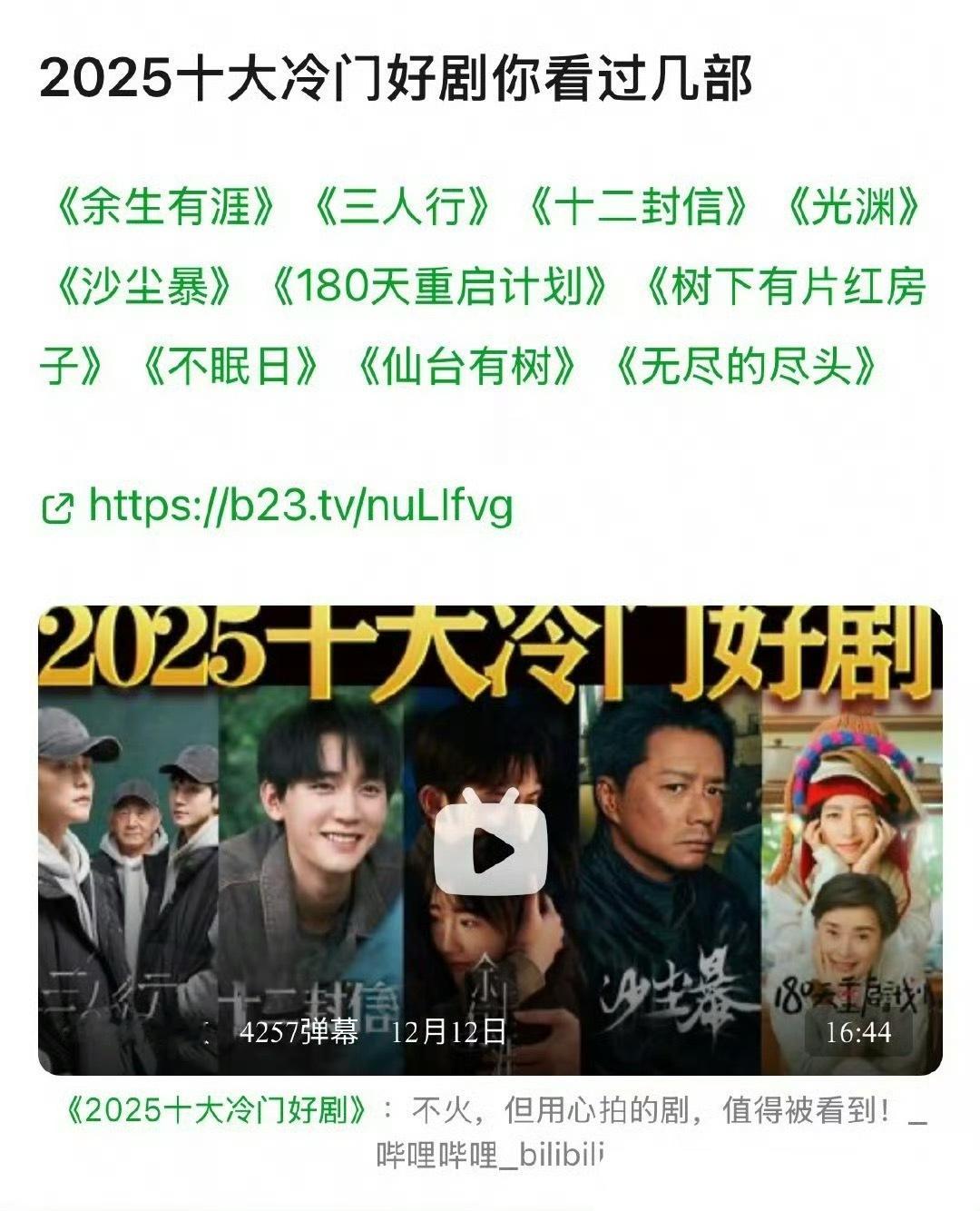 推荐:三人行、红房子,不眠日,仙台有树2025年十大冷门好剧