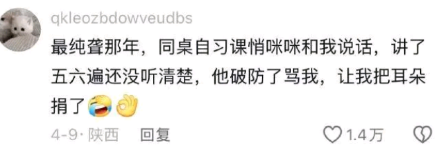 同桌自习课悄咪咪和我说话,讲了五六遍还没听清楚,他破防了骂我,让我把耳朵捐了