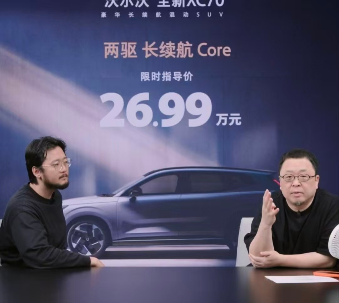 不知道兄弟们有没有在直播间买东西的习惯,最近大火的罗永浩“交个朋友”直播间正值“双十二”年终大促,我就好奇了解了一下,结果您猜怎么着?真让我看到老朋友了哈哈哈 作为沃尔沃首款超混车型,全新XC70大家都不陌生吧,11月一个月销量就达到了5354台台,直接来到跻身25万以上混动SUV销量榜TOP5的位置,成为沃尔沃品牌新销冠,这实力,真的不用多说了!当然,提到沃尔沃,就不得不提“安全”二字,前段时间特别火的XC70对撞XC90的碰撞视频兄弟们都看了吗,时速128km/h直接撞,门把手和安全气囊瞬间弹出,A柱无损坏,大家担心的电池也没起火,果然在碰撞测试上,能跟沃尔沃对撞且全身而退的,大概真的只有另一台沃尔沃了除此之外,沃尔沃XC70的诚意也给的特别足,什么NPA智能领航辅助、泊车辅助、哈曼卡顿音响系统、6kW外放电……统统都安排上,价格方面也很给力,四个版本价格区间26.99万-34.99万,在“交个朋友”直播间还有双十二专属超值购车权益,喜欢的兄弟们快去了解一下!罗永浩说豪华新能源就看沃尔沃XC70 罗永浩带货沃尔沃全新XC70