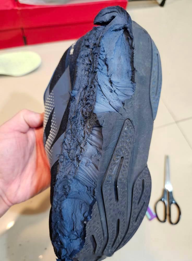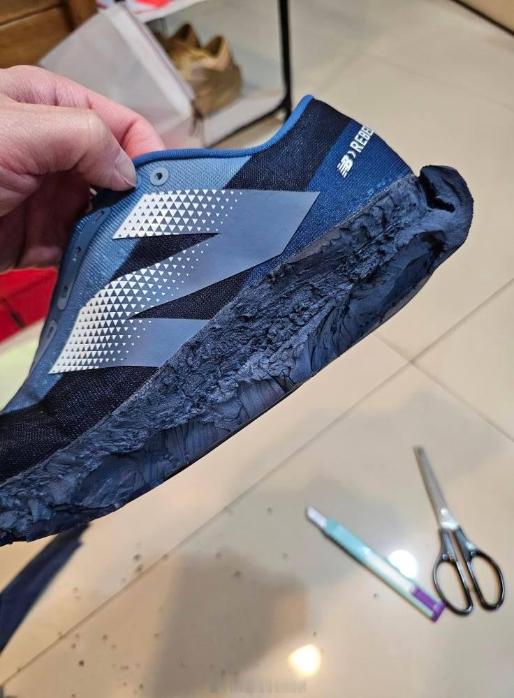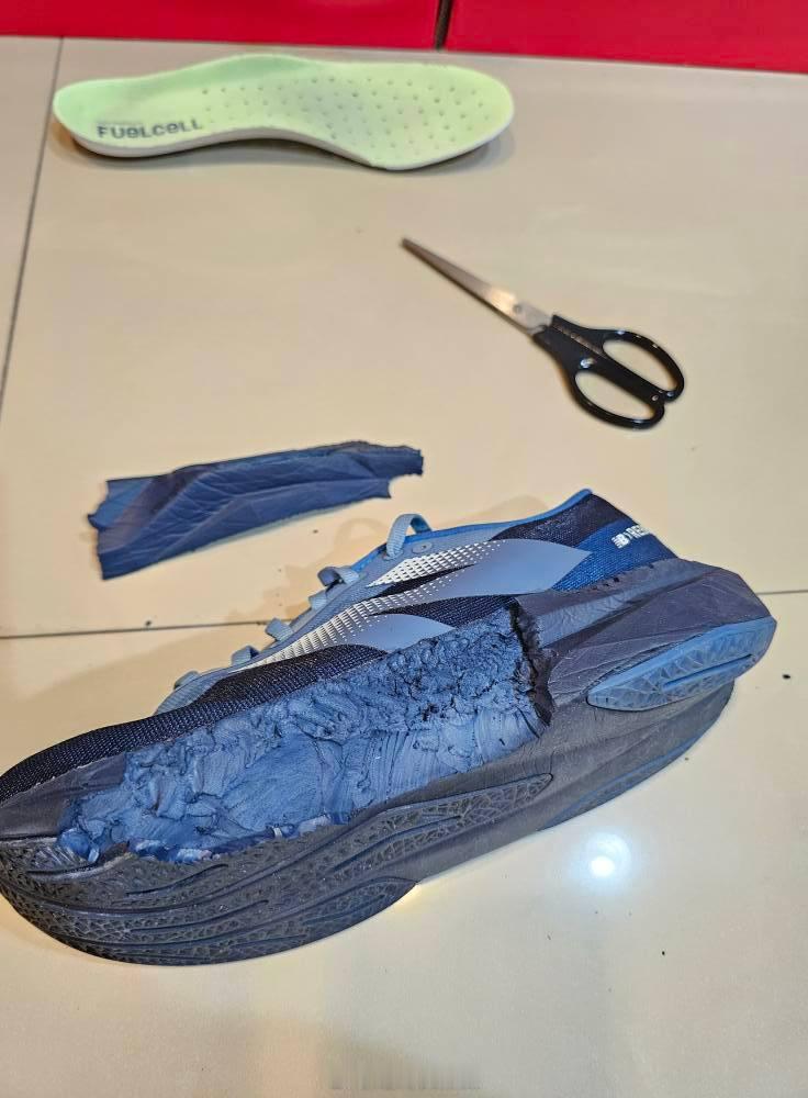 一位自行拆 New Balance Rebel v4 的跑友表示:没想到拆鞋真没想象那么容易。不过他证实了一件事,这鞋中底材料里面也是蓝色的。这种中底材料的好处就是不会磨一下露出白色太显旧。NewBalance 跑鞋 跑步鞋