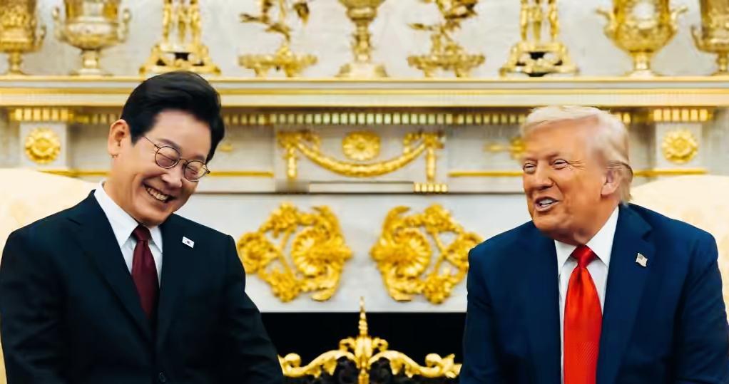 李在明和特朗普两人咋笑的这么开心呢? 两人笑的姿势和表情是不是都挺夸张啊? 两人这是谈论了什么好事情啊?笑的眼睛都眯成一条线了啊! 两人这笑容大家说是发自内心的吗?