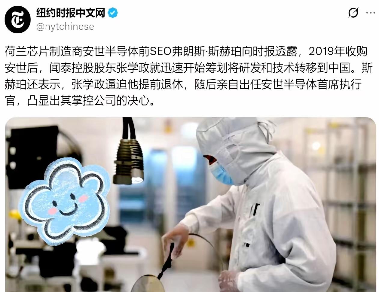 刚看完《纽约时报》的那篇报道,真是又好气又好笑。安世半导体的前CEO拿到340亿全款后,现在突然跳出来“爆料”,说闻泰科技收购公司后,要把研发部门搬到“熊猫家”去,自己因此无奈提前离职了。这说法也太离谱了吧! 资本圈里不都这样嘛,谁出钱多谁说了算,这难道不是基本常识?人家实打实拿出34亿欧元现金买下100%的股权,难不成是来当“祖宗”供着的?这位前CEO还顺便吐槽了微软“管不了子公司”的说法,这倒确实说了句大实话。 这就像你把房子卖了,收了全部房款,转头却嫌弃买家装修风格不对自己胃口。这简直就是既要赚你的钱,又要砸你的招牌,最后还想立个“好人”的牌坊来恶心人。这事儿被外媒说成“密谋”,简直是滑天下之大稽。 商业收购本来就是你情我愿的事儿,现在倒打一耙,这吃相也太难看了。大家觉得这种拿了钱还反过来找茬的做法,到底算不算商业上的“碰瓷”呢? -search.byteimg.com/img/labis/91a53f5a314909152eccbd64dc4e9fef~480x480.JPEG