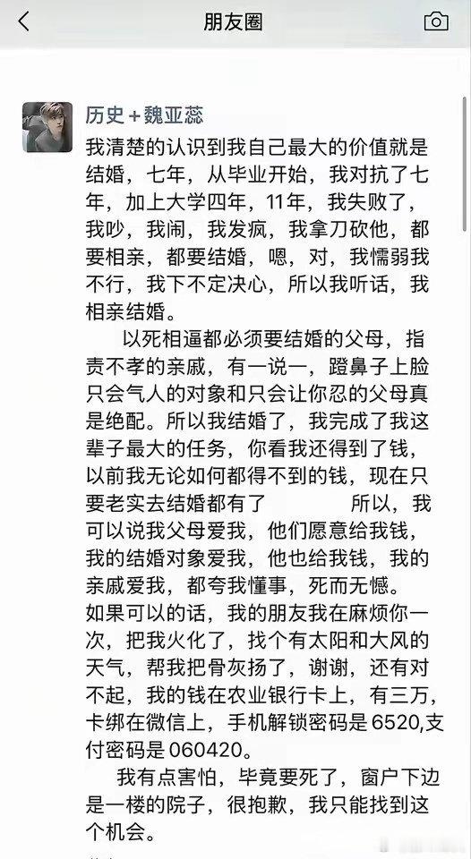 殡仪馆证实女教师新婚当天坠楼身亡,这是一个悲剧,非常可惜。但是我看互联网一边倒在谴责她父母,这是完全错误的。老公她自己选的,不是包办婚姻,更不是买卖婚姻。更多是她心理健康出现问题,其实结婚是本来生物本能自然而然的事情。把结婚当成比死还可怕,那就是认知心理出巨大问题。现在互联网有巨大的不健康,就是攀比思维严重。要攀比谁嫁得好,如果不攀比思维传播严重,不会对很多女生结婚造成很大压力。