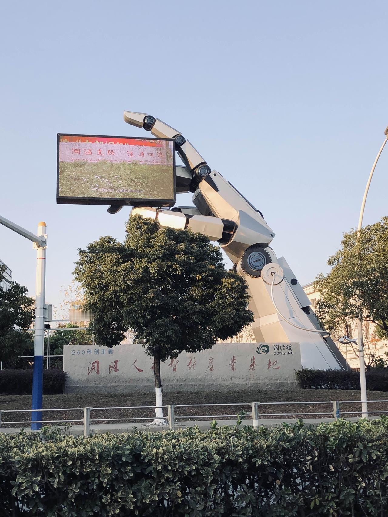 G60科创这几个词现在到处可见。松江在路口搞了这么个巨大的机器手雕塑,像擎天柱埋在地里伸手指向威震天!科创科创,从一片农田林地到世界级科创中心,松江这块土地十年后不知道会不会成为第二个张江!总之虹桥商务区比拼陆家嘴是不可能的,G60科创走廊比拼张江有60%希望!
