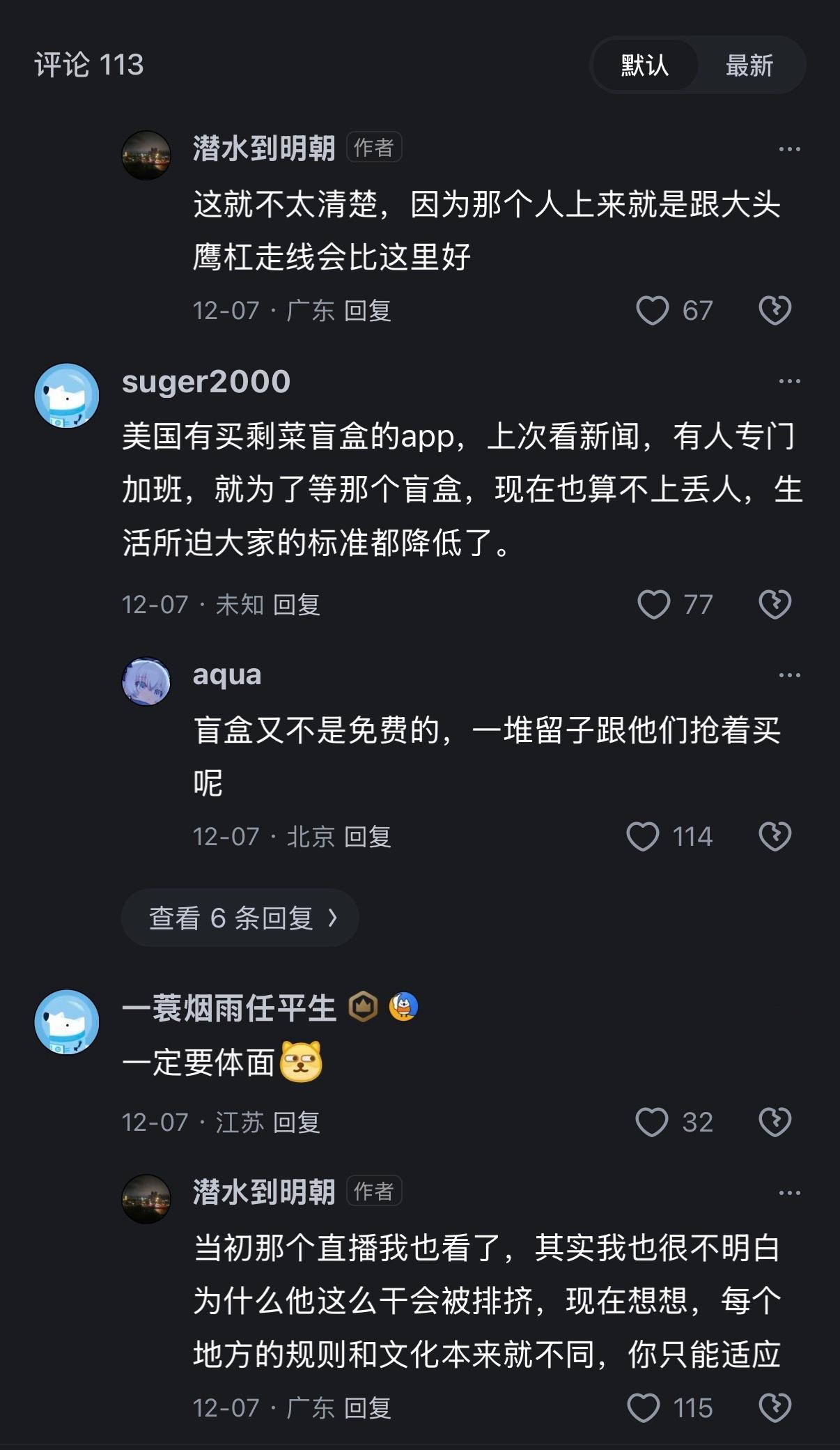 🔻我想起,最近在阿B和🍠刷到好多留子买剩菜盲盒的视频……🔻所以这句“盲盒又不是免费的,一堆留子跟他们抢着买呢”就很具体了。网友讨论美国存在斩杀线热点现场海外新鲜事