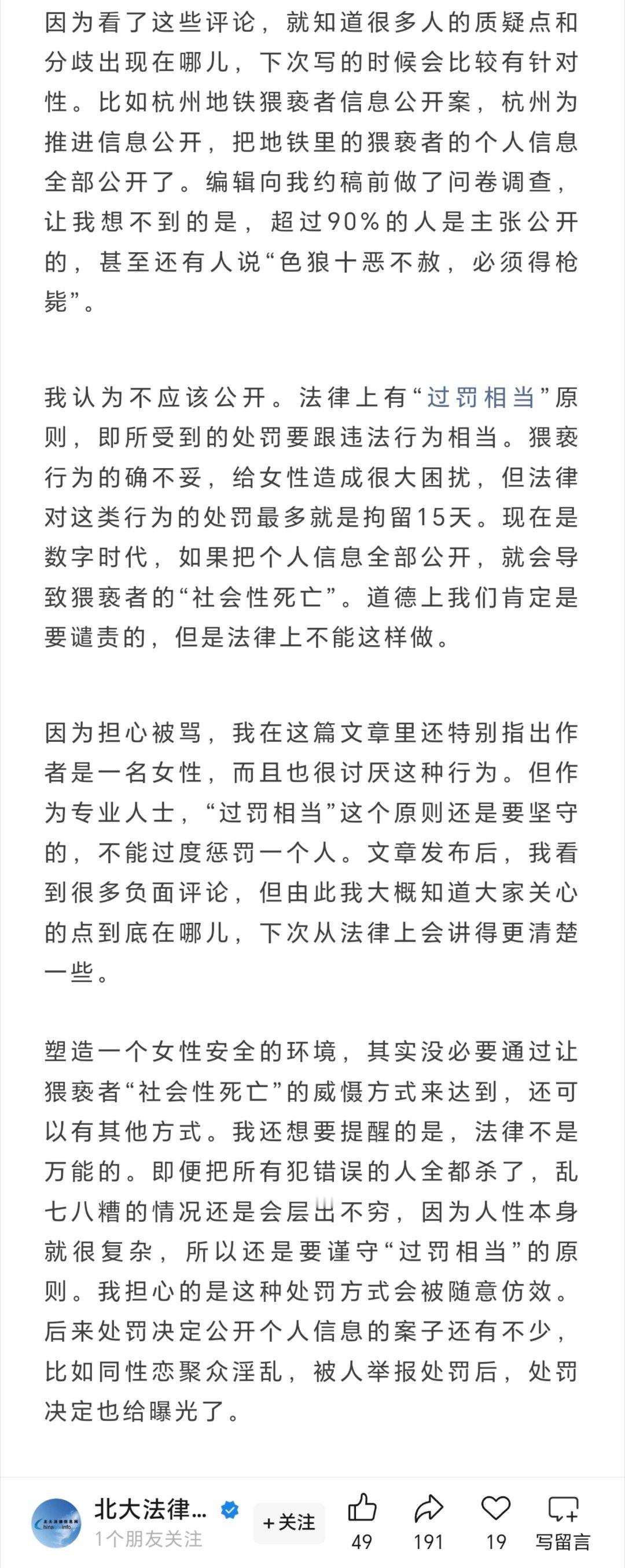 赵宏近期(12天前发布于网络)的一篇文章表示,她不但不赞同公开吸毒者嫖娼者档案,也不赞同公开猥亵女性的人的相关信息。她还强调她也是女性,所以不是洗白猥亵者。越看她的文章,越哭笑不得,怎么能有这种三观的人……