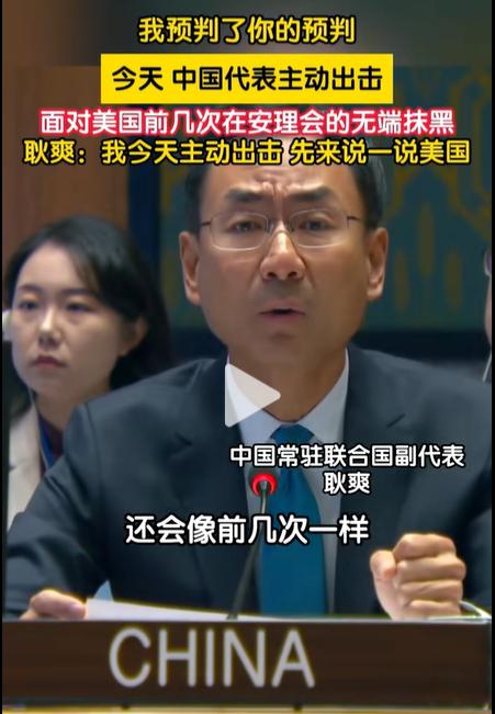 耿爽联合国名场面:不等你美国抹黑,我先骂你一顿!   这绝对是联合国会议上的罕见一幕。   中国常驻联合国代表耿爽大使,刚拿起话筒,就直接把话挑明了。   他对着主席说:如果我没猜错,一会儿美国代表发言,肯定又要老调重弹,在乌克兰问题上对中国污蔑甩锅。   “以前几次,我都一一反驳了。”   “今天,我索性主动出击,先来说一说美国。”   后来爽哥说,如果今天美国代表一反常态,没有抹黑中国,那我要对美国代表表示歉意~[呲牙]   美国人那套流程,我们太熟了,结果美国代表还是按照耿爽的预判进行了发言[捂脸]   这个联合国,每次谈到乌克兰,总有几个国家像拿了固定剧本,不管事实如何,一定要把祸水往中国身上引。什么“背后支持俄罗斯”、“破坏和平”,帽子扣得飞起。   说白了,就是自己解决不了问题,又怕丢脸,必须找个“替罪羊”来转移国内国际压力。   以前,我们是等他们泼完脏水,再站起来,一条条驳斥,摆事实、讲道理。   但这次,耿爽直接把对方的剧本提前公布了。意思很明白:你那点心思,全世界都看腻了,别演了。在我这儿,此路不通。   主动出击,出的是什么?   出的是一面照妖镜,照出美国在乌克兰问题上的双重标准和真正意图。   一边挥舞着制裁大棒,把全球经济搞得乌烟瘴气;一边又成吨成吨地输送武器,让战火越烧越旺。这到底是在劝和,还是在浇油?   自己带着北约东扩了五轮,把别人逼到墙角,现在却反过来指责别人“威胁安全”。这套逻辑,根本立不住脚。   耿爽把话说到前面,就是把这场外交博弈的实质,提前摊在了所有成员国面前:今天要讨论的,不是谁该背锅,而是谁在真正阻碍和平。   它告诉美国,告诉世界,中国在国际舞台上,要更坚定地“定义议程”,你有发言权,我也有。而且,我能预判你的恶意,并毫不犹豫地拦截它。