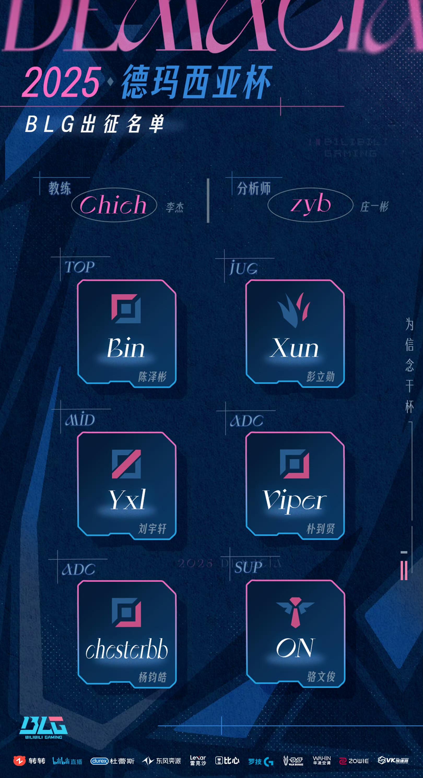 虎扑12月14日讯今日BLG发布2025德玛西亚杯出征名单,具体如下: