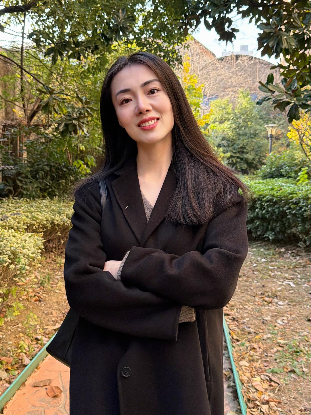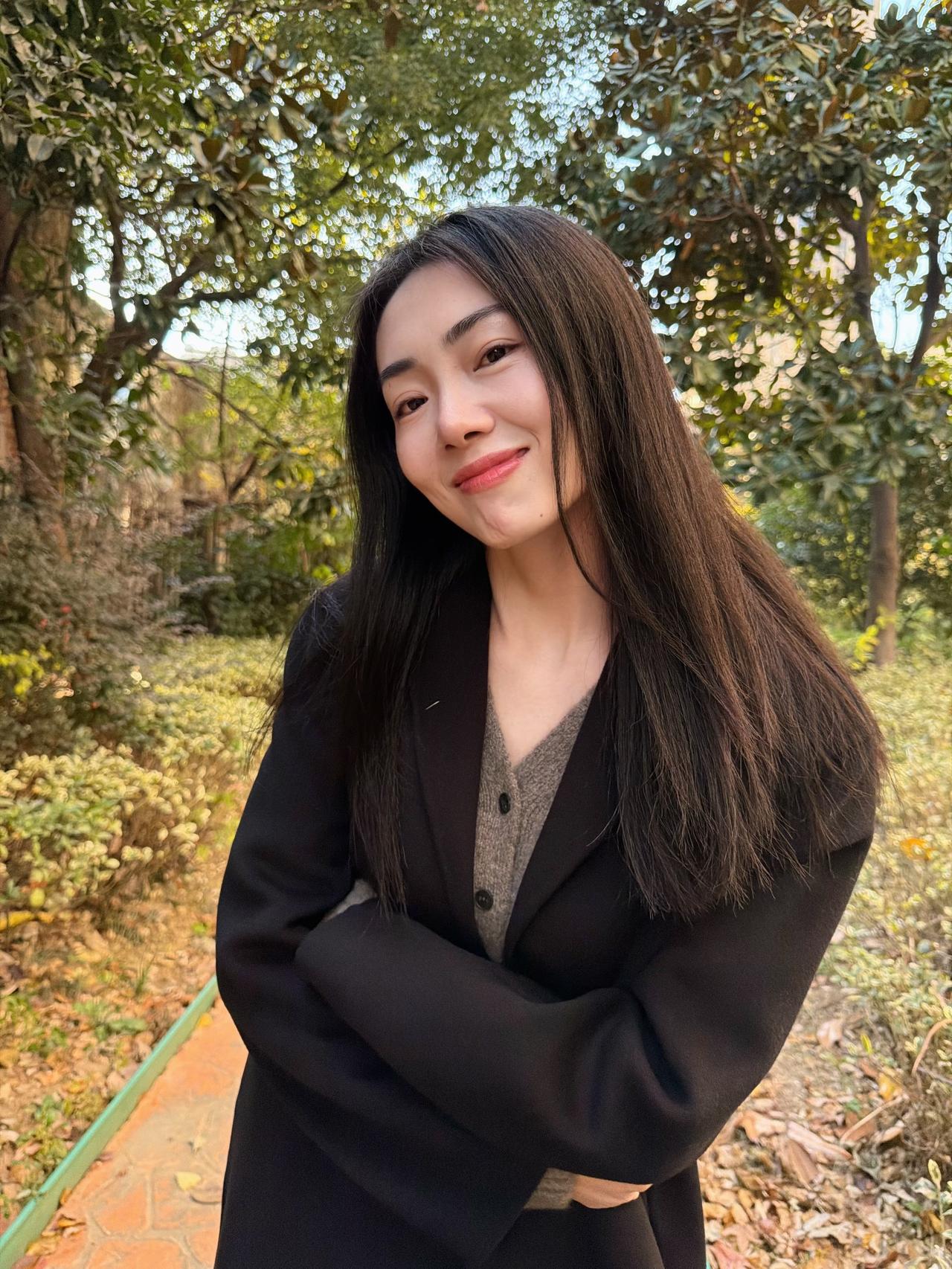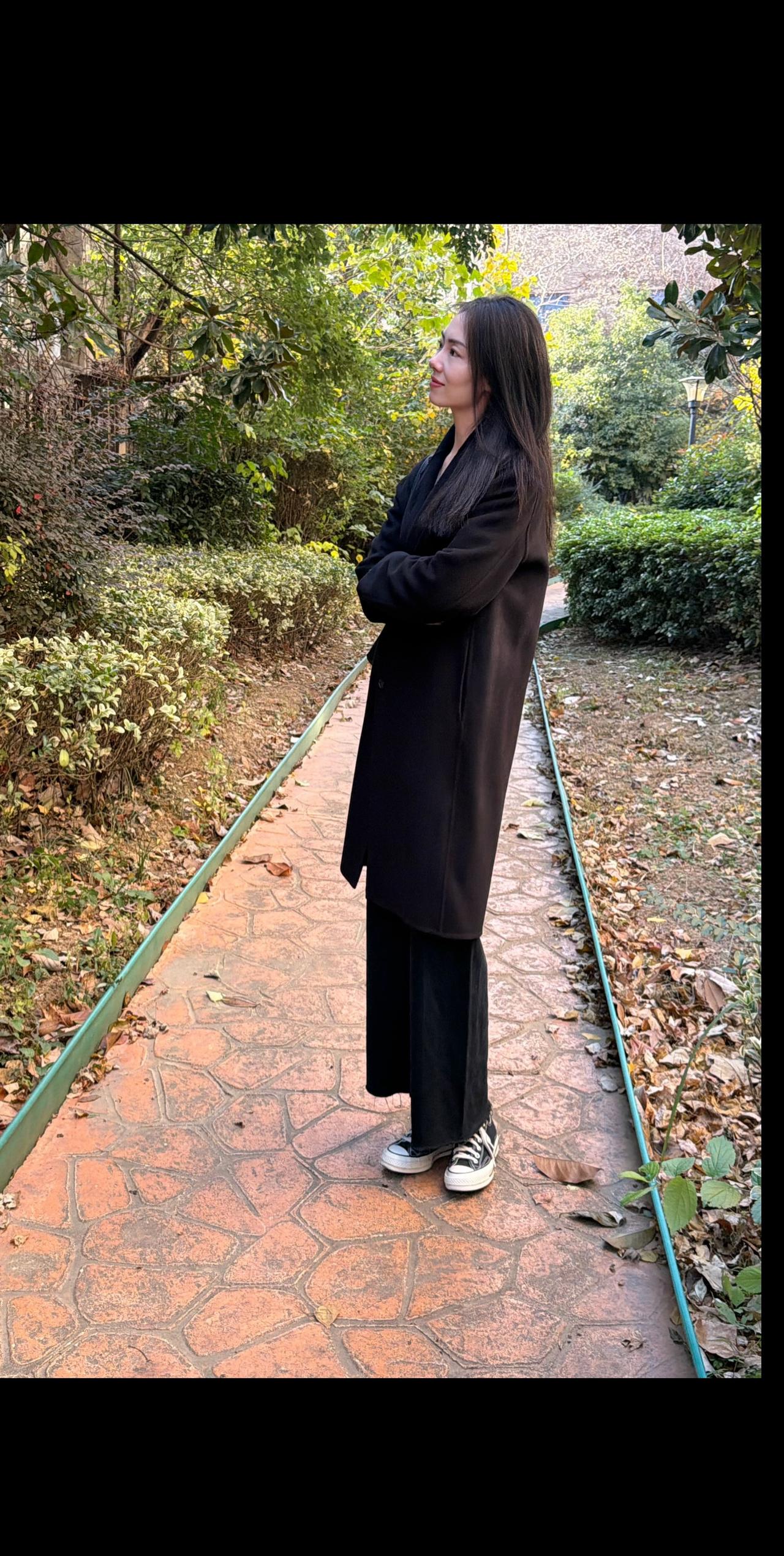 冬日暖阳下的甜美自拍,灰色围巾搭配黑色外套,温暖又时尚!街拍高清美女
