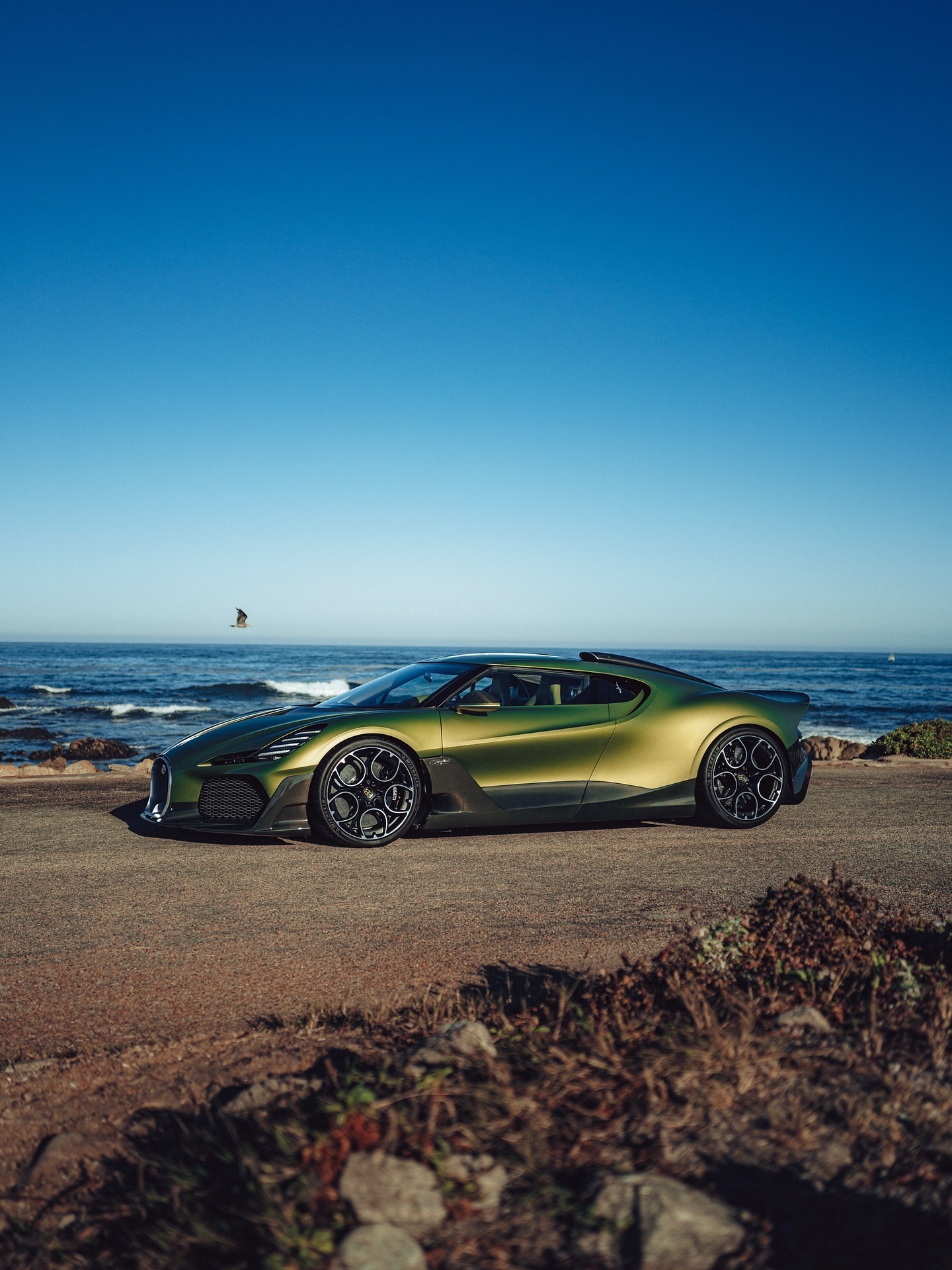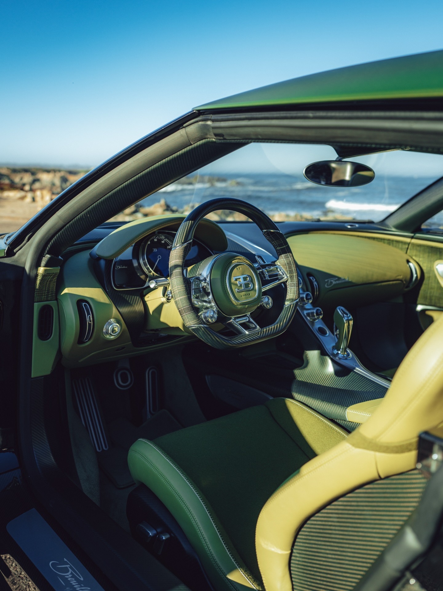 今年,Bugatti推出了名为“Programme Solitaire”的限量版项目,首个项目就是令人惊叹的Brouillard。基于Mistral,frank.heyl团队打造了这个限量版,以向Ettore Bugatti最爱的马——Brouillard——致敬。将这款车仅仅看作是Mistral的Coupé版本,实在是对它不够公平,因为它拥有太多令人惊叹的细节,几乎像是所有现代时代Bugatti的精华。以车顶的通风口为例,它们灵感来源于Veyron。鸭尾设计是对Chiron Profilée的致敬,而排气管(配有六个尾嘴)则基本上是从Ciron Super Sport那里继承而来的。内饰部分才是真正的疯狂所在。车内使用了真正的马鬃,甚至变速杆内还装有Brouillard的微型雕塑。布加迪mistral豪车超跑老纪侃车