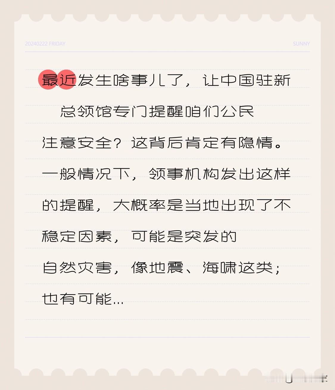 最近发生啥事儿了,让中国驻新潟总领馆专门提醒咱们公民注意安全?这背后肯定有隐情。一般情况下,领事机构发出这样的提醒,大概率是当地出现了不稳定因素,可能是突发的自然灾害,像地震、海啸这类;也有可能是社会治安方面出了状况,比如犯罪率上升之类的。 大家都知道,出门在外安全第一,中国领事机构一直都在为海外同胞保驾护航。这次的提醒,咱在新潟的同胞可得上点心。 你们觉得这次提醒是因为啥情况呢?在新潟的朋友有没有感觉到什么异常?遇到这种情况该怎么更好地保障自身安全呢? 中使馆提醒 领馆领事保护 外国领事 领事探访 领事救援 中使馆提醒 领馆领事保护 外国领事 领事探访 领事救援 外国领事机构 海外领事报告
