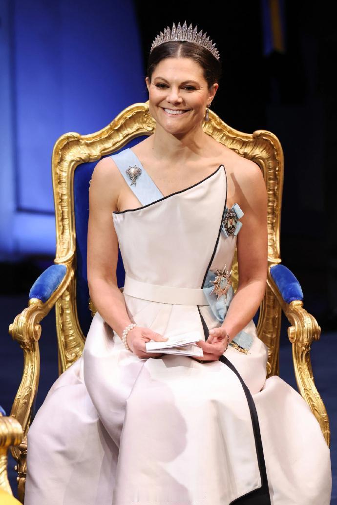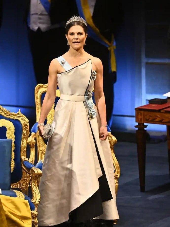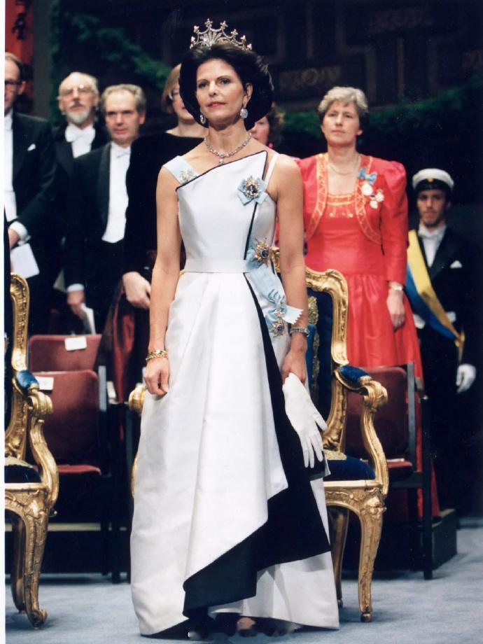 前些天瑞典王储维多利亚在诺贝尔奖颁奖礼上从亲妈西尔维娅衣柜里挖掘了件黑白缎面礼服礼服,当时的设计师是Jacques Zender 西尔维娅最早在1994年的诺贝尔奖颁奖礼上穿,后面还穿了一两次 维多利亚去掉了原版的吊带和腰侧的一坨花,胸前那块飞起来的尖尖似乎原来就不太平整,不知道咋回事 西尔维娅在94年是51岁,维多利亚今年是48岁,年龄差不多。从整体呈现效果看个人觉得西尔维娅胜,不过维多利亚手臂上的腱子肉也挺厉害的