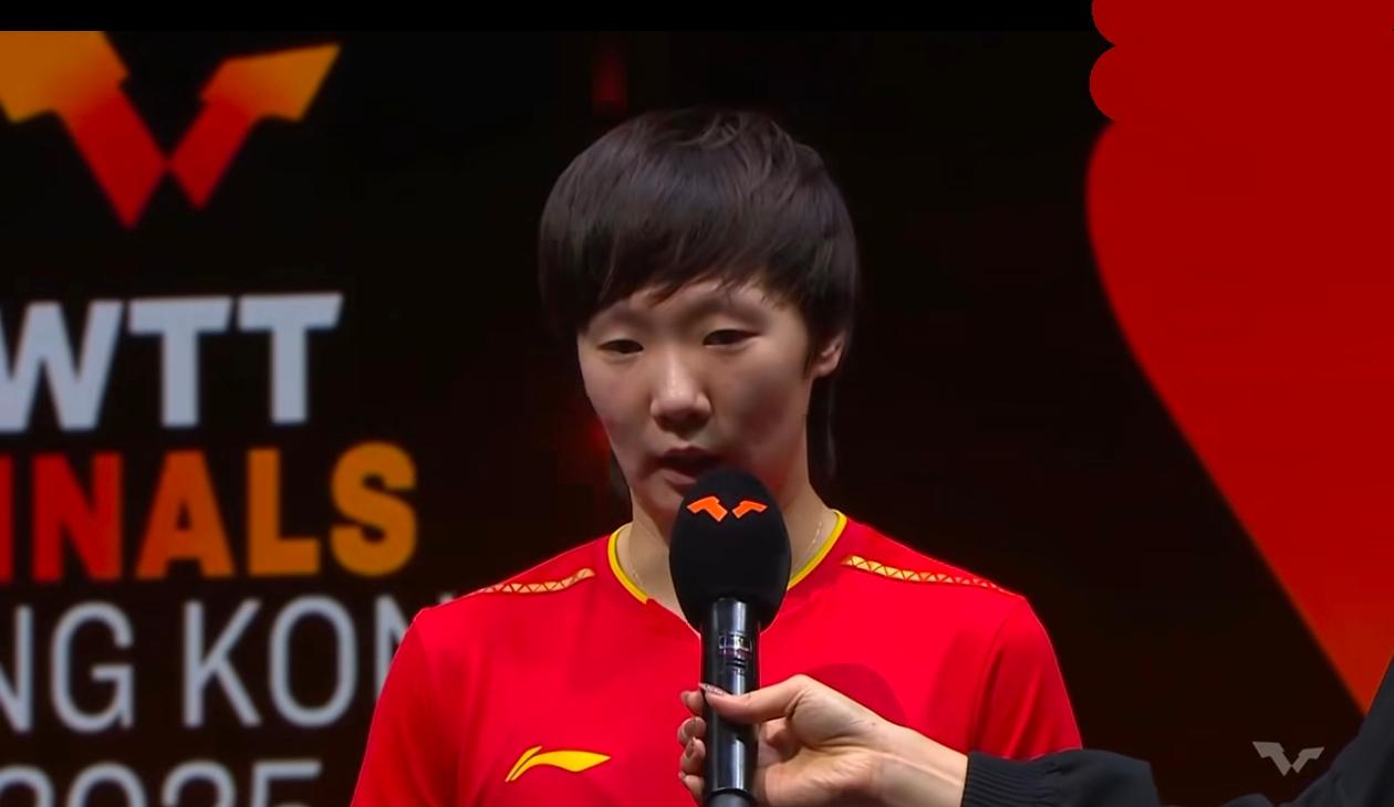 啥也不说了,加鸡腿吧!!! 王曼昱现在的情商是越来越高,简短的赛后采访,照顾到所有人,受采能力直线飙升,再也不是那个害羞的小女孩了。两分钟的采访,她回答的面面俱到。 ★第一、肯定对手 她说到蒯曼很顽强,几度落后几度追平,给自己造成了非常大的压力。 ★第二、认可自己 今天自己发挥的非常出色,顶住压力,拿到冠军,是对自己的认可。 ★第三、感谢球迷 不管是第一次看还是经常看,感谢大家一年以来的陪伴和支持,感谢大家一直支持中国乒乓球队。 ★第四、不忘队友 她特意提到,希望未来都能健康涨球,长时间的在赛场征战!(她还惦记着莎莎因伤退赛)
