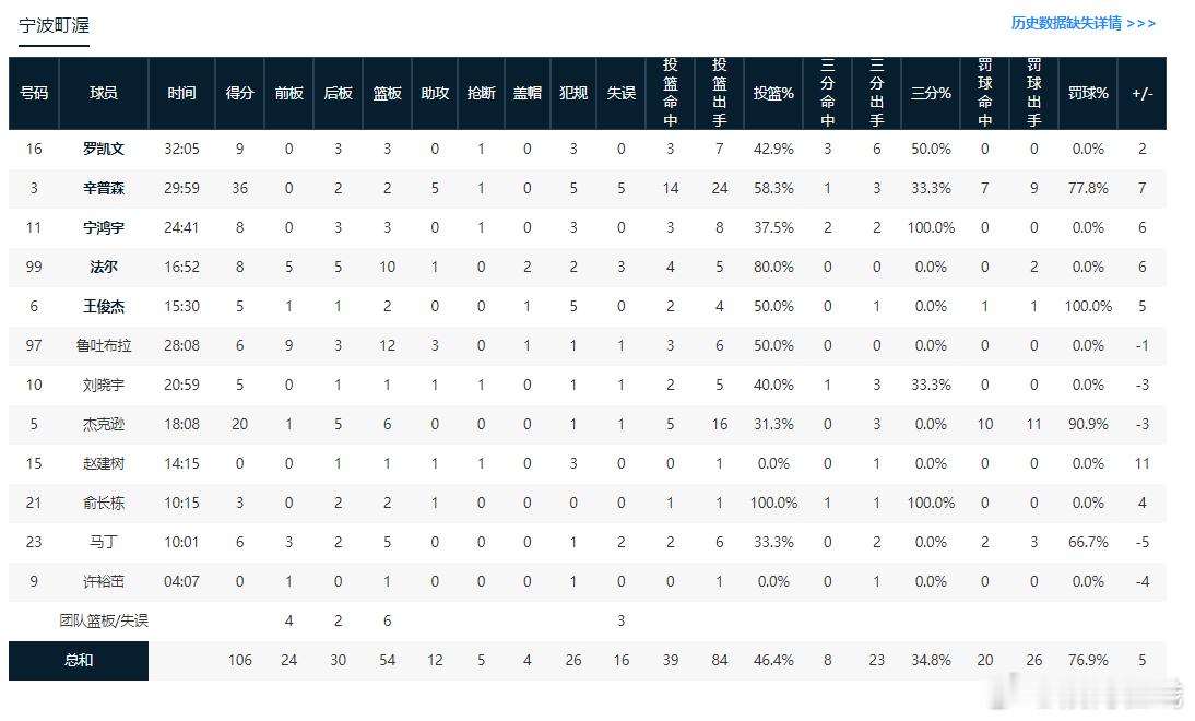 没有了余嘉豪,浙江队在攻防两端都受到了影响。而上赛季胜场数与浙江差距巨大的宁波,在经历了休赛期大刀阔斧的改革后,经历加时拿下了队史首场对浙江的胜利。浙江队在少了余嘉豪后,篮板球被宁波队完爆,前后场篮板差分别为11个和7个。而在篮板之外,以往余嘉豪所能提供的内线护框,现在也荡然无存。宁波队在内线以59%的命中率得到了46分。由达卡里约翰逊、刘泽一、达米安琼斯所组成的内线组合又不足以在防守端给予宁波威慑。不得不说,这赛季的宁波,气质完全不一样了。宁波男篮加时战胜浙江男篮