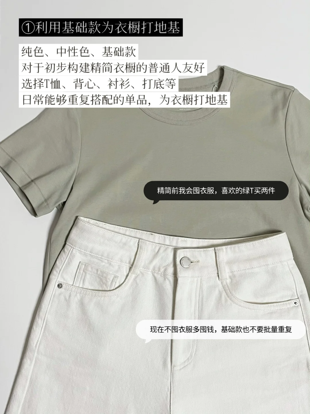 纯色、中性色、基础款,数量多、尺码全。对于初步构建精简衣橱的我来说,比较友好。我会选择T恤、背心、衬衫、打底这些日常能够重复搭配的单品,为衣橱打地基