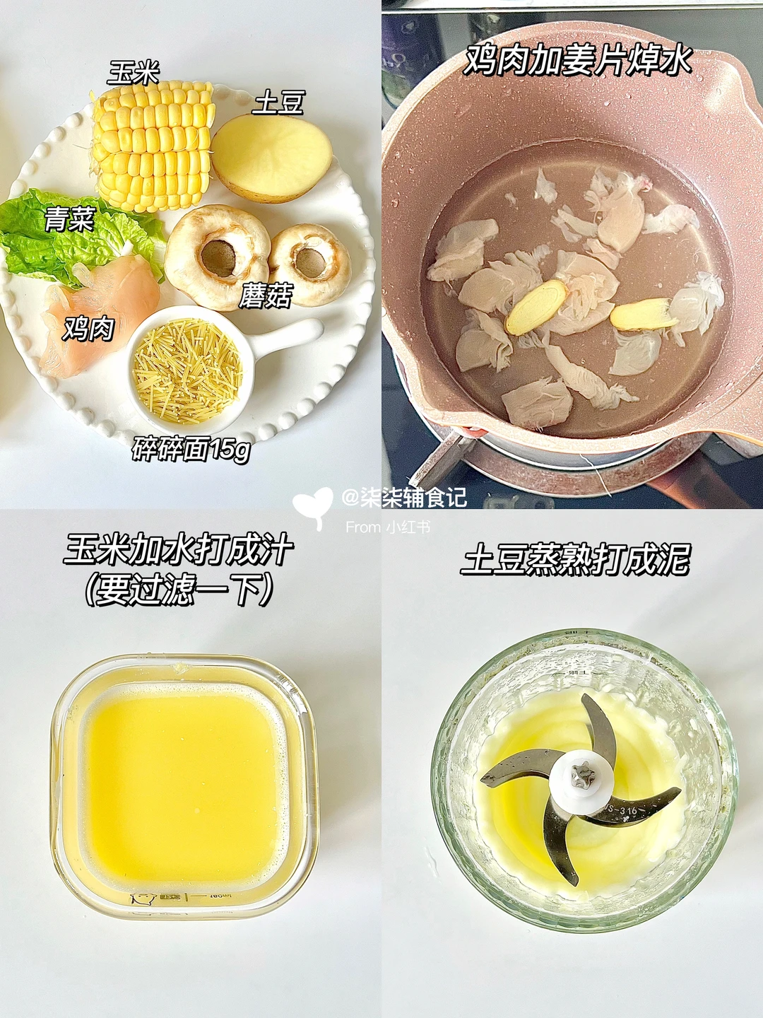 土豆玉米鸡肉面加了口蘑,好香呀!蒸完都香喷喷,难怪柒柒胃口这么好,要是能加调料就更不错啦!