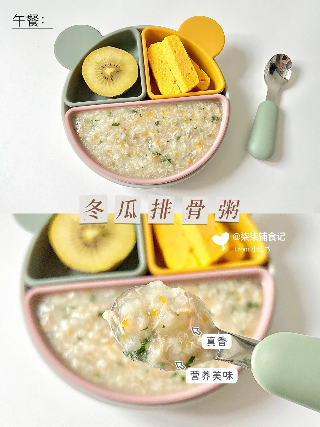 午餐冬瓜排骨粥和胡萝卜米粉蒸糕,土鸡蛋比较小或者其他鸡蛋比较小可以用3个蛋黄,或者减少米粉用量就可以打出细腻浓稠的米糊,打不动就是米粉太多,鸡蛋太小,根据米糊状态调整用量就可以哦